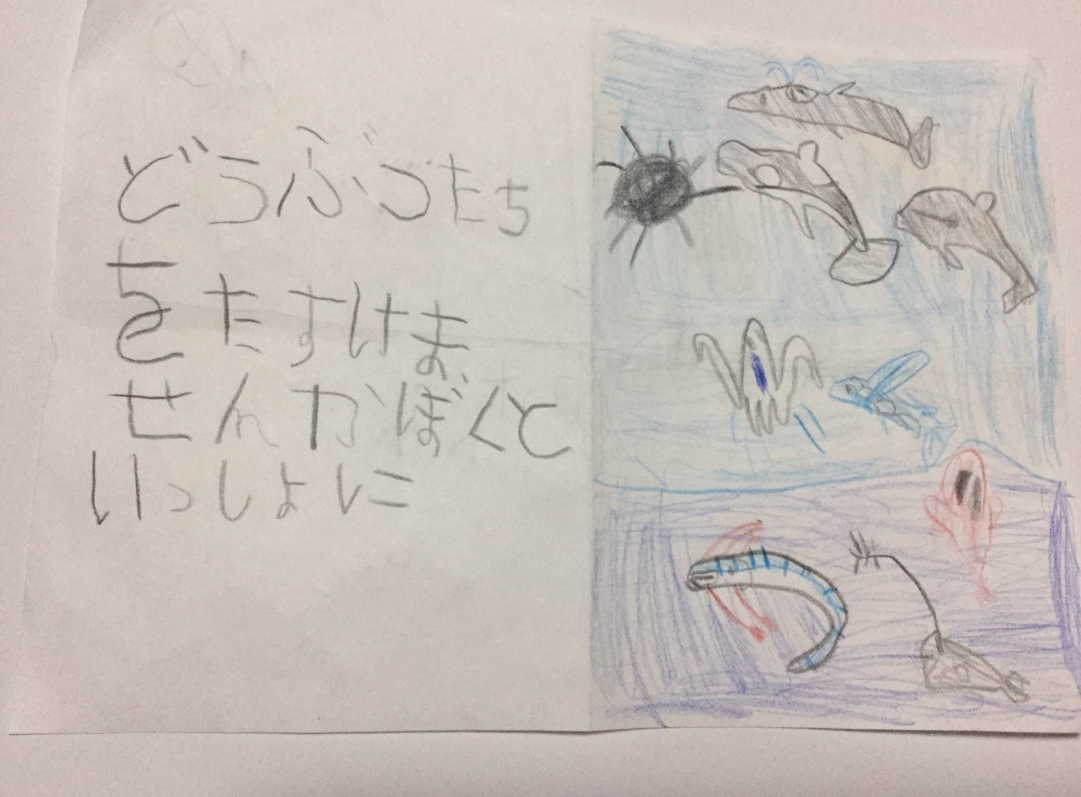 僕の考えと同じ考えの人もいっぱいいるかな〜」と鼻歌まじりに、突然、絵を描き始め