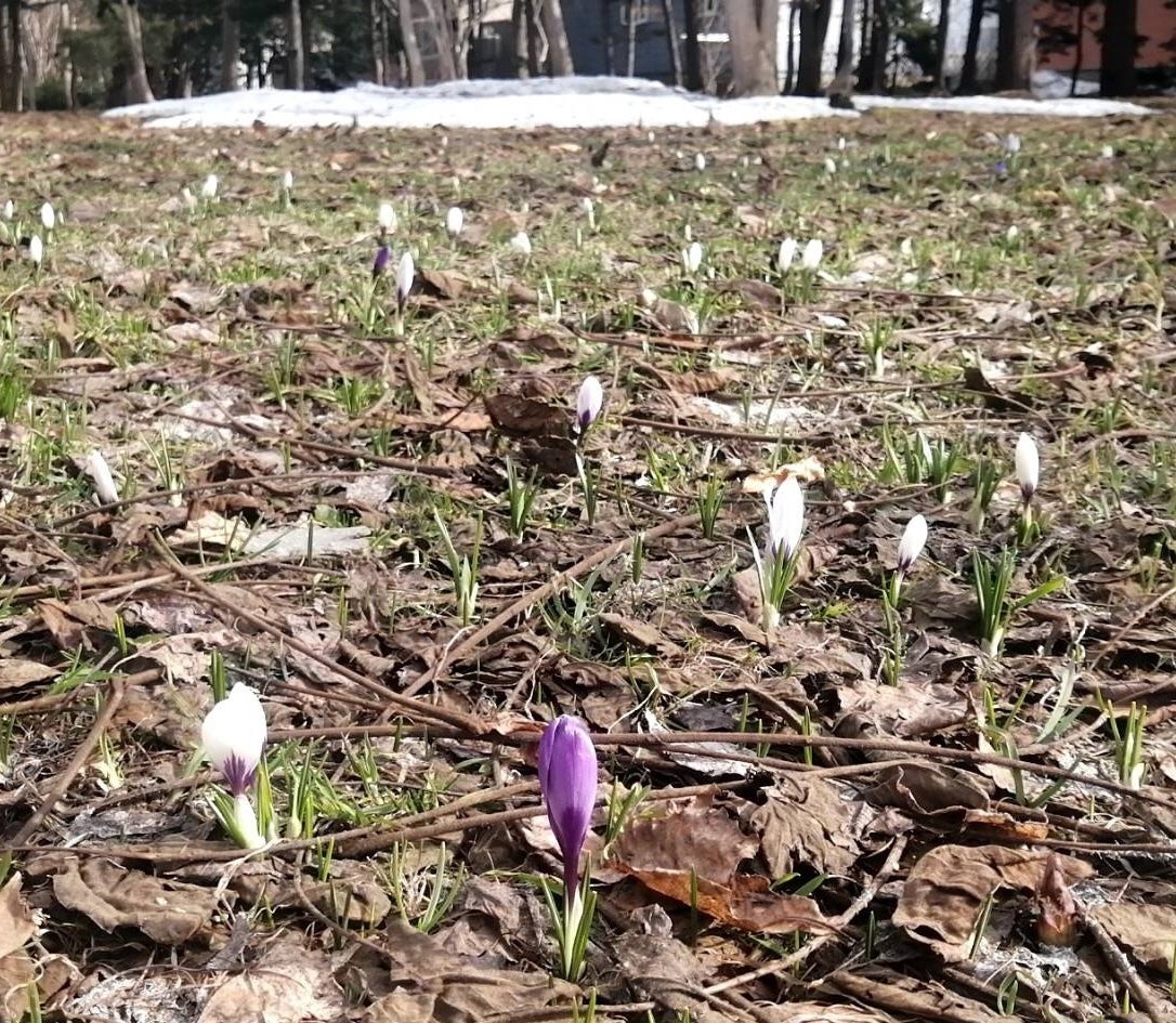 (クロッカスの後ろに写っているのは雪です)