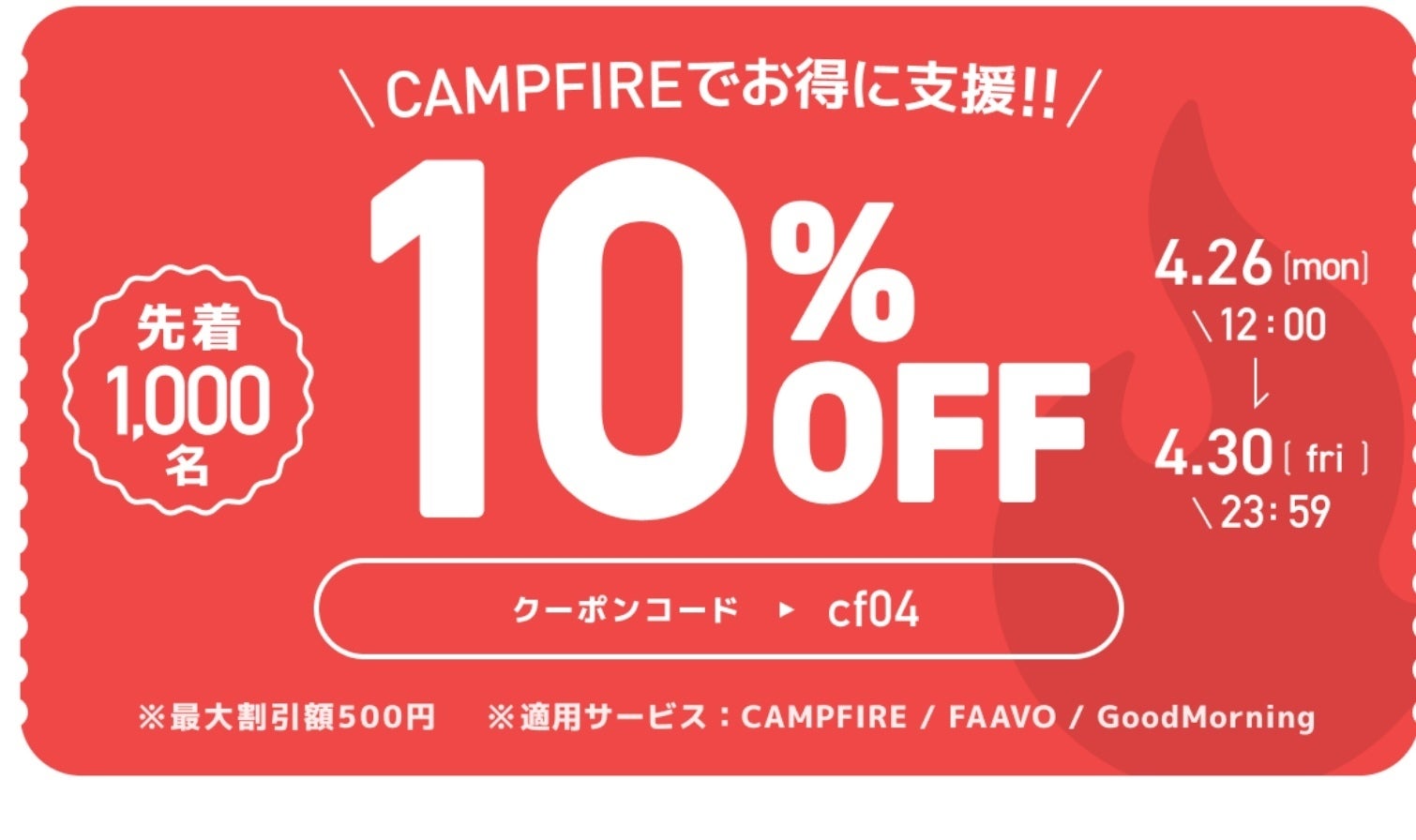 先着1,000名様、支援額が10%OFFになるクーポンになります。