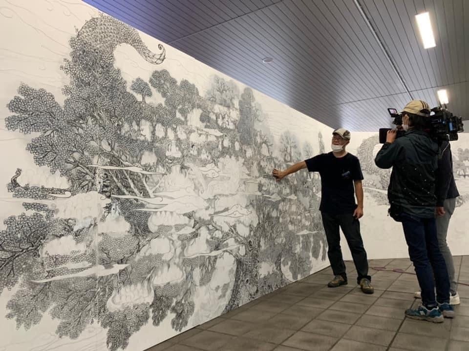 2020/10/12 15:5510/10~10/11、甲府駅北口ぺレストリアンデッキにて開催したクラウドファンディング開始記念のLIVEドローイングイベントが無事終了しました!地元紙、テレビ局にも取材に来ていただきました。武田二十四将も壁画に描き込まれるこの壮大なプロジェクト。道行く人の反応を見るに、改めて事務局チームとしてもこの企画のスケールを実感しました。プロジェクトリーダーの笹本や参画アーティストも集合し、ライブドローイングやトークセッションも行いましたが、日本画家中堀慎治さんにも起こしいただき、プロジェクトに興味を持っていただいた方に直接トークで説明もいただきました。中堀さんには、プロジェクトの意義を深く情熱的に語っていただき、プロジェクトチームの胸も熱くなりました。スタートが経過し2日目にして、早くもファンディングが10%達成しようとしています!みなさま、本当にありがとうございます!船の樹に乗船出来るのは三部作合わせて1000名ほど...。クラウドファンディングスタート前には300名程すでに御応募頂いていますので、残りは600数名となります。リターンをお読みいただき、この機会に是非乗船してください。あなたの大切な人と、このプロジェクトについて話し合ってみても良いかも知れませんね。 もっと見る