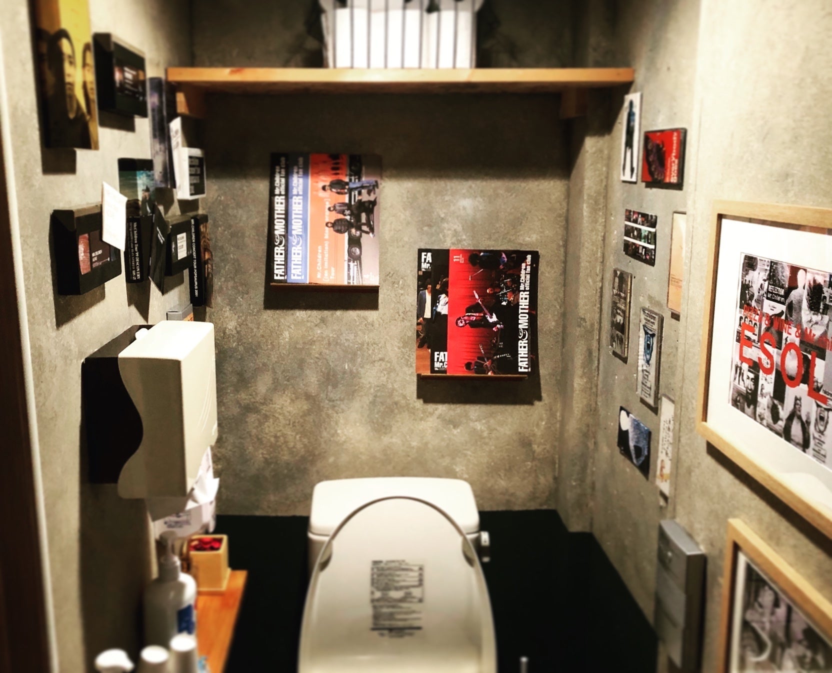 現在では通常のバル空間だけでなく米子店、岩国店、松江店ではトイレをミスチル一色にしております。曲ももちろんミスチルの名曲達。見渡せば懐かしのCDやファンクラブの会報。VHSのLIVEビデオなどなどミスチルファンには堪らない空間を作りました。