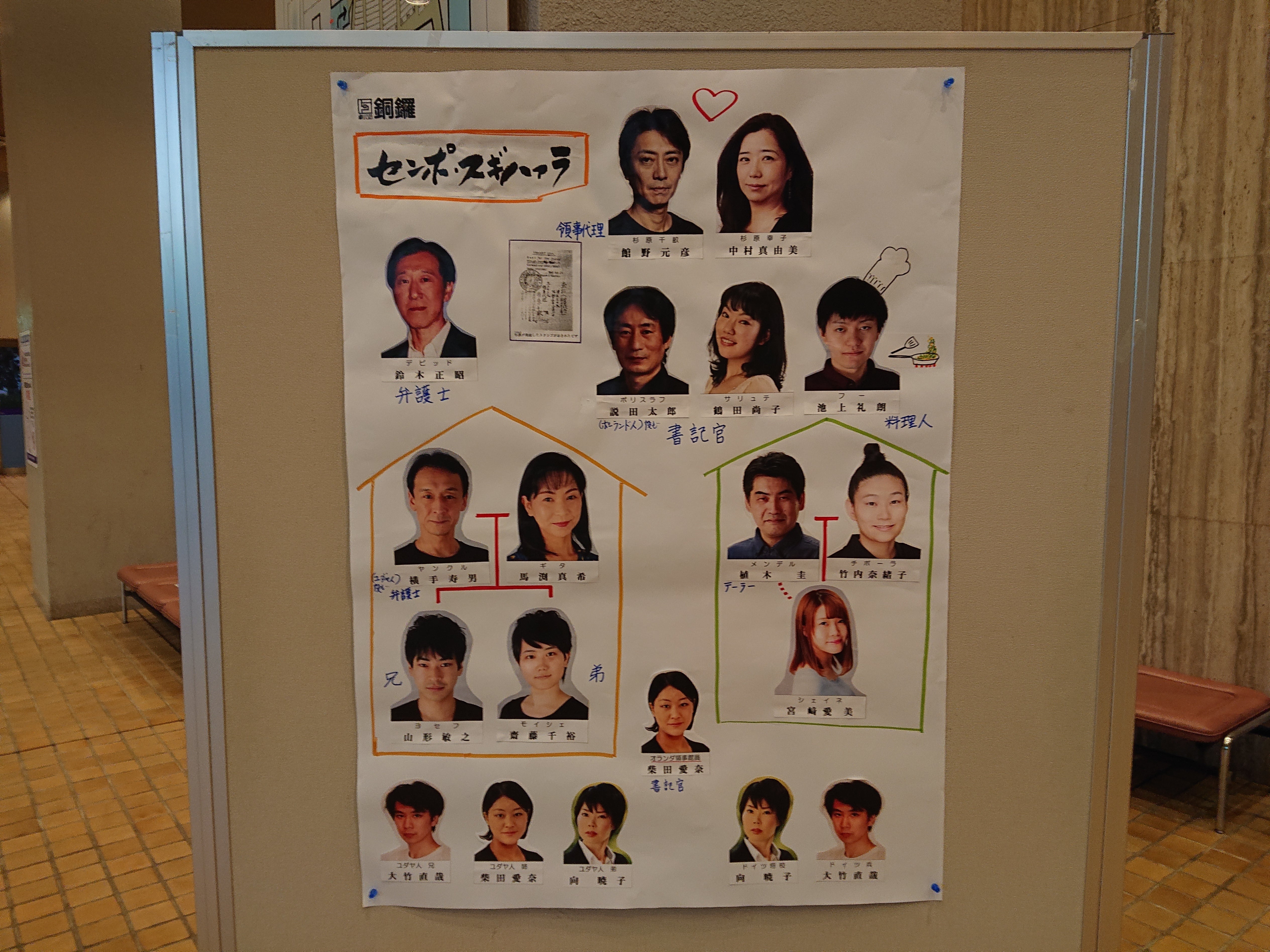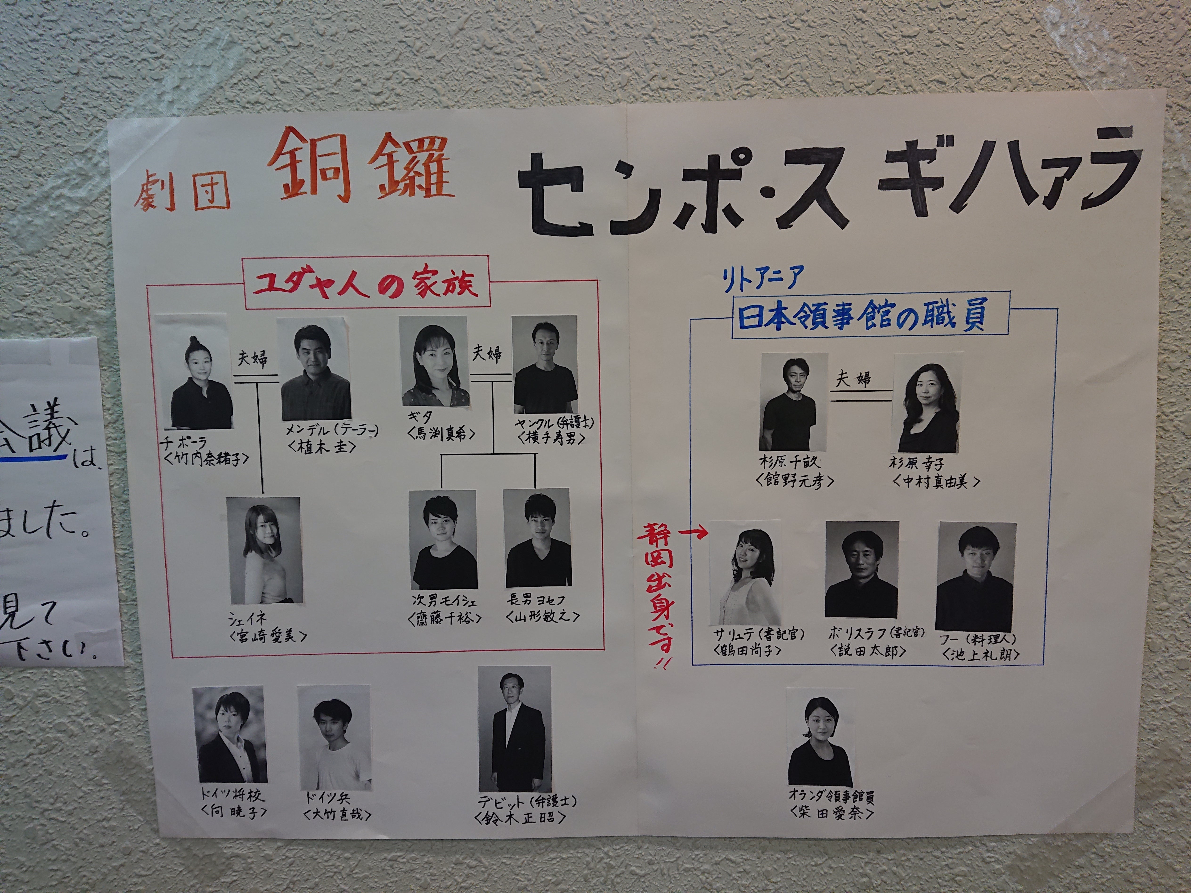 2020/12/05 22:50『センポ・スギハァラ』静岡ブロック例会続いております!12月2日・3日は【静岡市民劇場】さんでの公演でした。各地方で作成して頂いている【相関図】今回はカラーでした!千畝と幸子のハートマークが素敵です。料理人フーにもコックの帽子が(笑)この例会に対する愛が溢れる相関図でした。まだまだ旅は続きます! もっと見る君の街まで