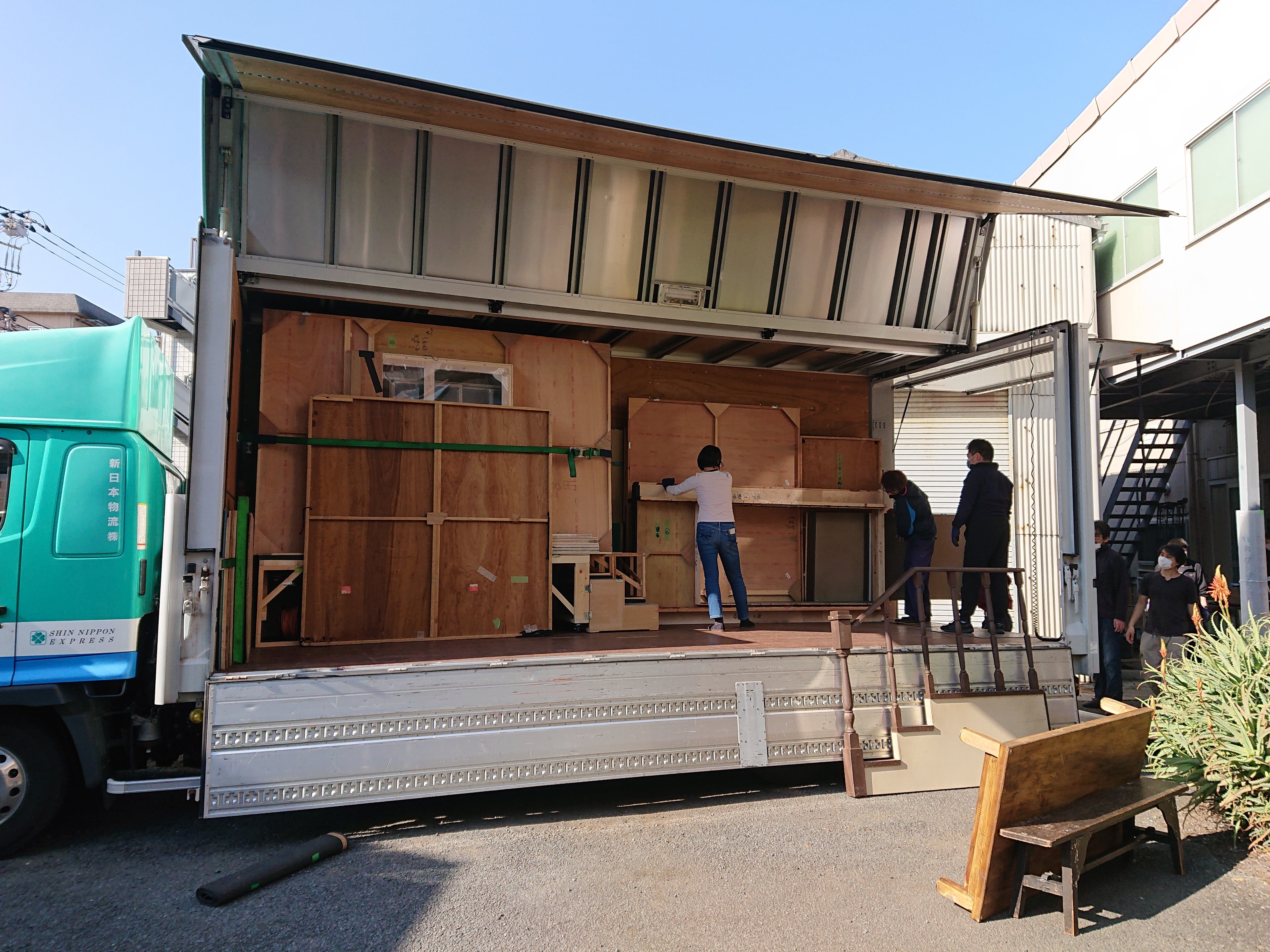 昨日は旅公演の為の荷積みでした。