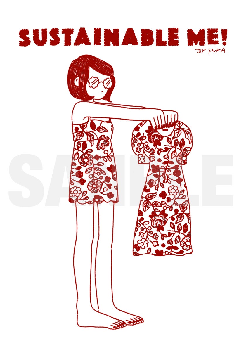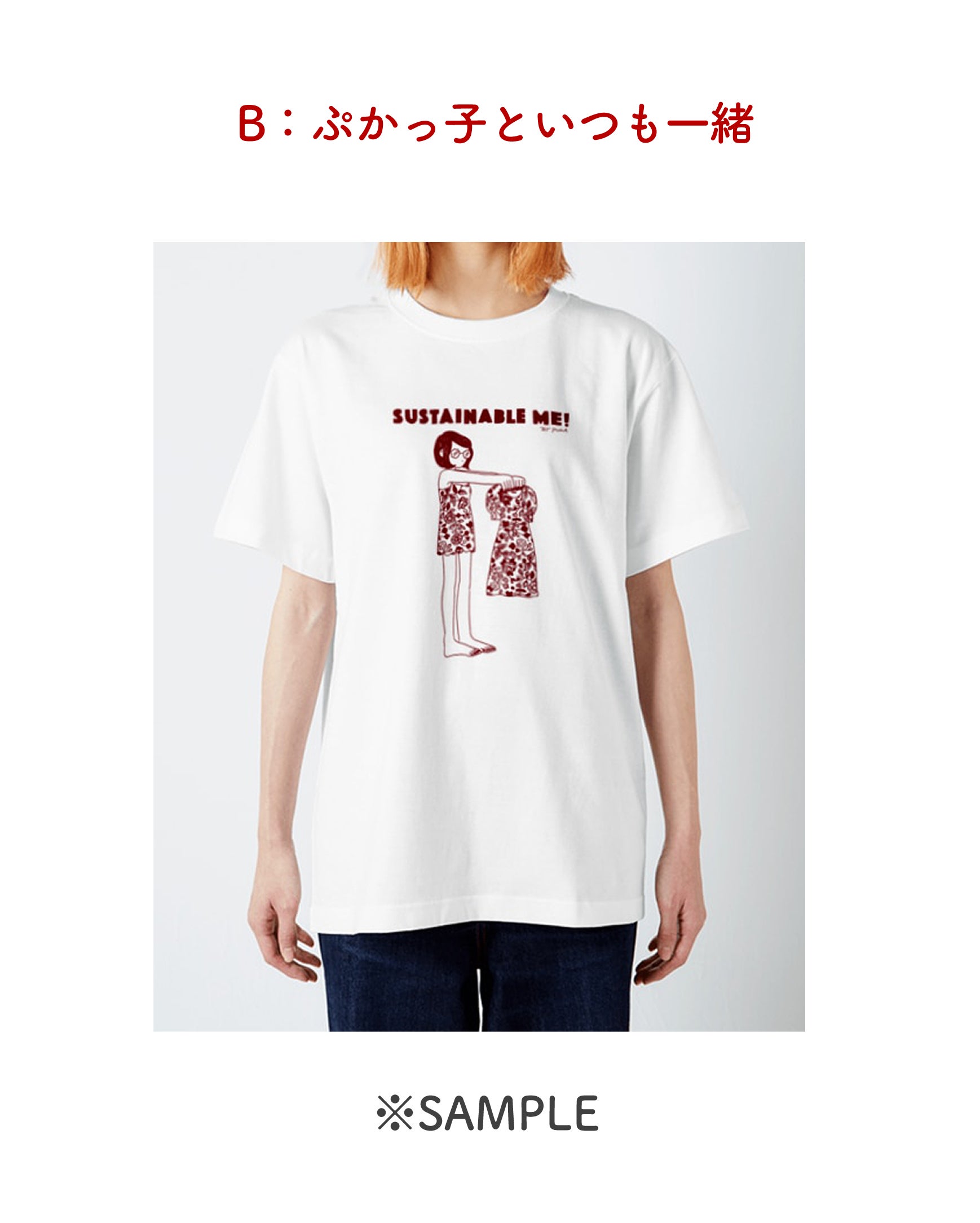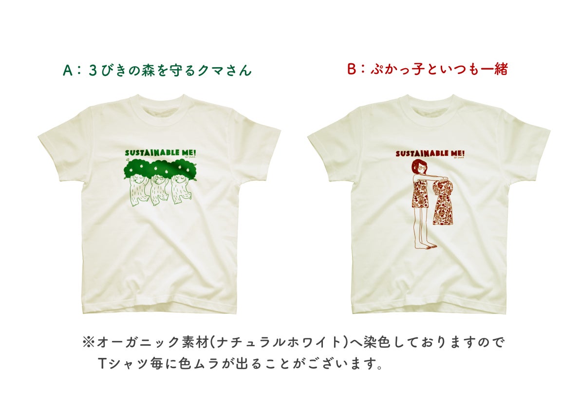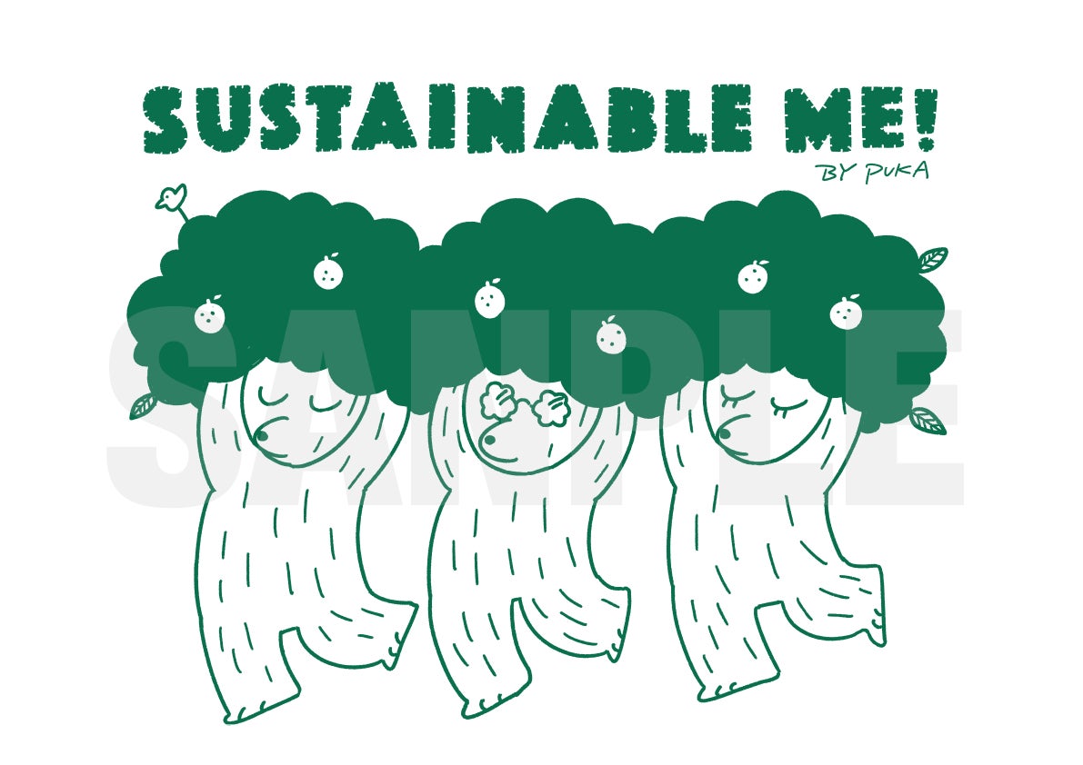 「SUSTAINABLE ME!」のロゴが入ったPUKAオリジナルのTシャツです。