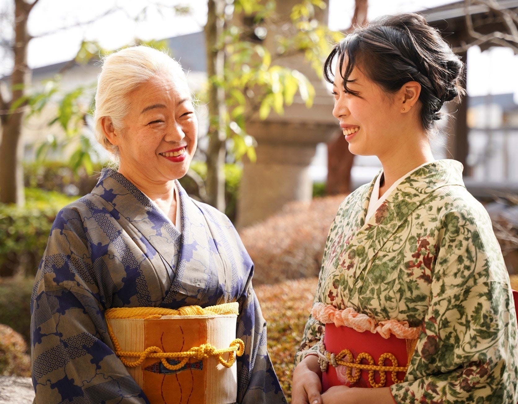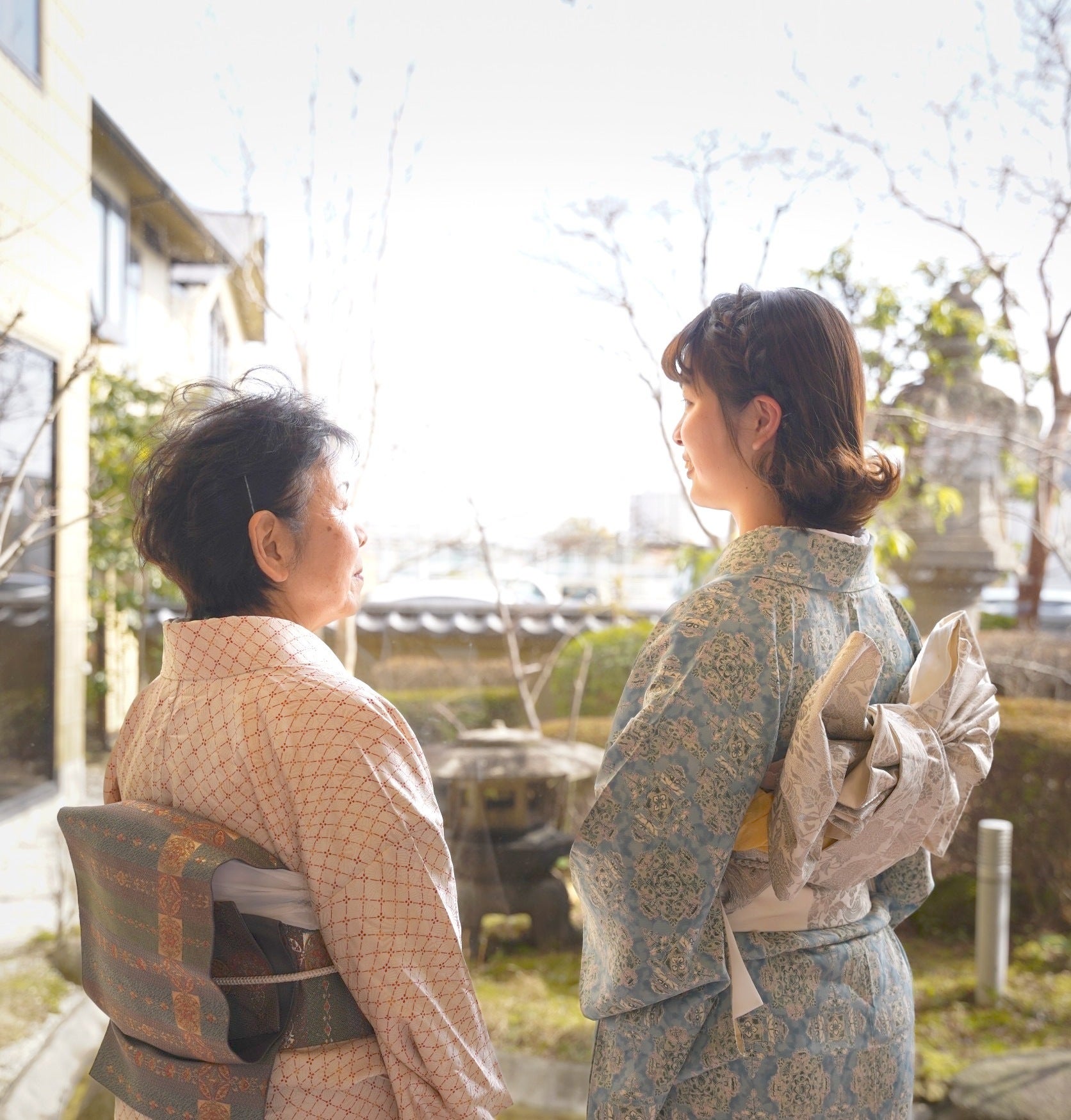 祖母と孫で着物の着付けを体験し、四季彩ホテル千代田館のお食事を楽しむオフラインイベント。眠っている着物を着用する機会を提供し祖母とZ世代を繋ぐことで、伝統文化の継承に取り組みます。