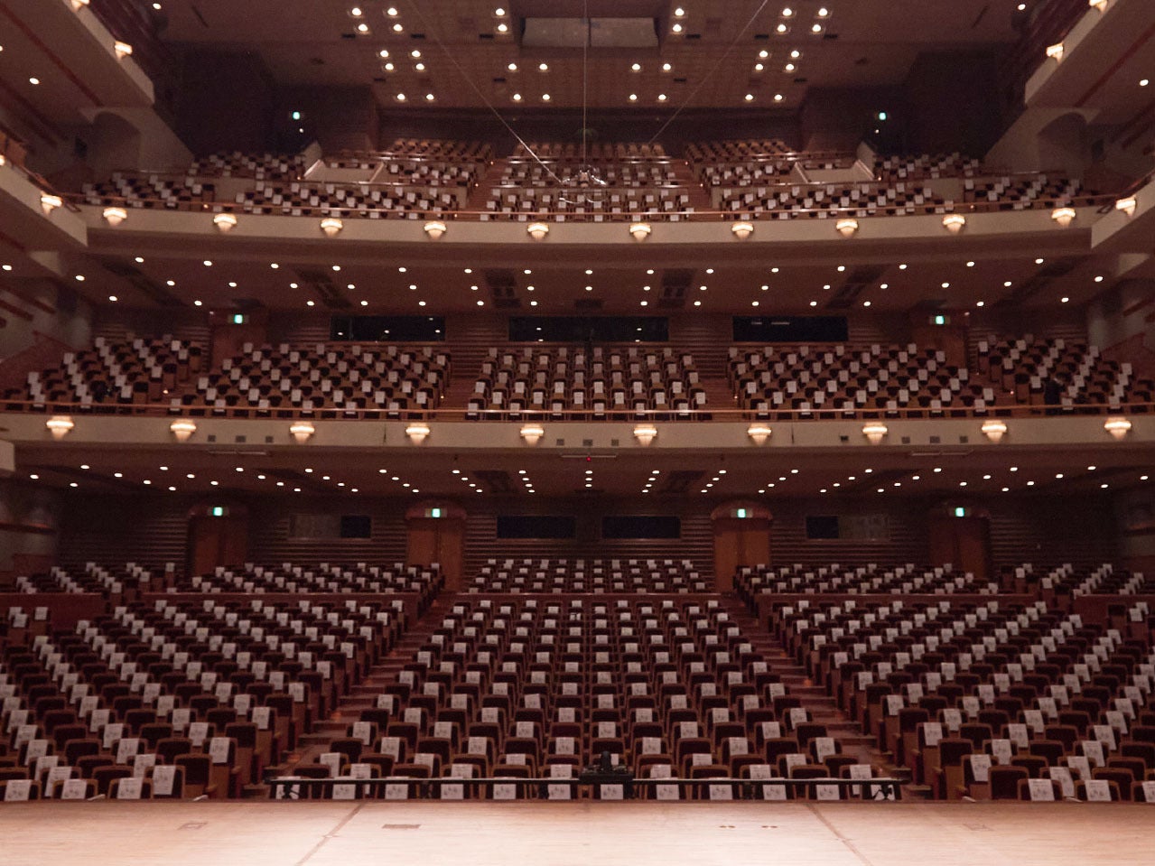 隔席毎に使用禁止の張り紙がされたアクトシティ大ホール