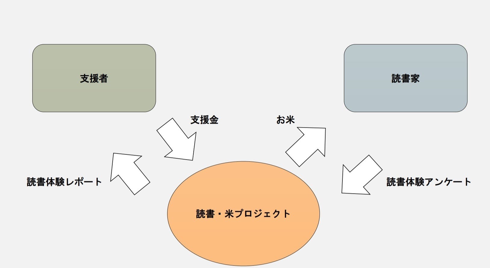 今回のプロジェクトでは、読書を趣味とする人に米を配り、その読書趣味を支援することを目的としています。そして、米と引き換えに読書体験に関するアンケートの回答をいただきます。読書体験を米に変換する場所として、このプロジェクトが機能すれば、と思っています。