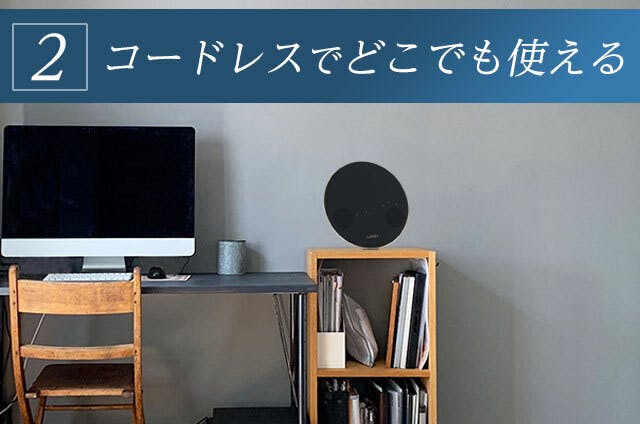 充電ができれば、コードレスで利用可能。持ち運びができますので、好きな場所で使うことができます。