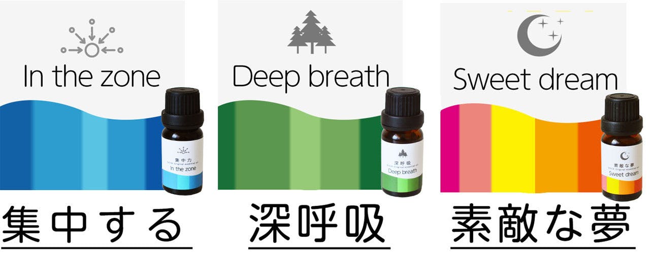 仕事や勉強などハードワークの気分転換に最適な「Deep breath」。ユーカリやミントなど、爽やかな香りに思わず、深呼吸したくなるでしょう。