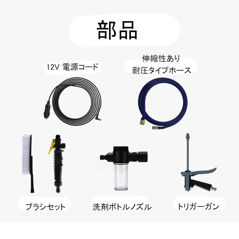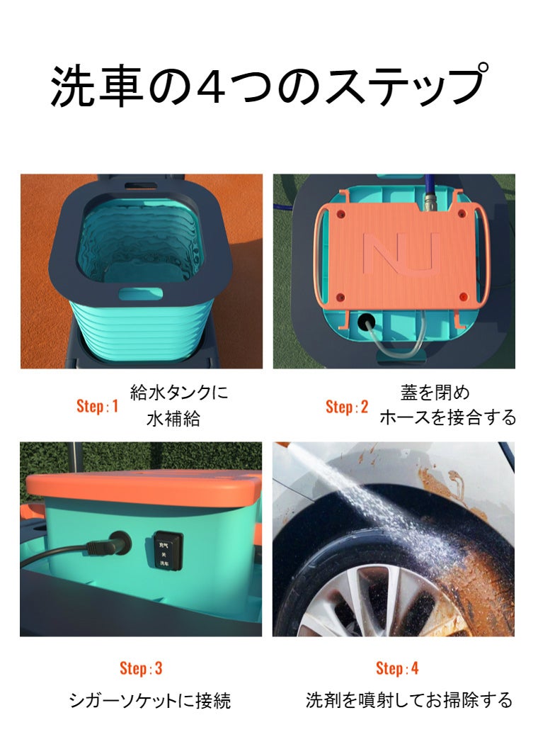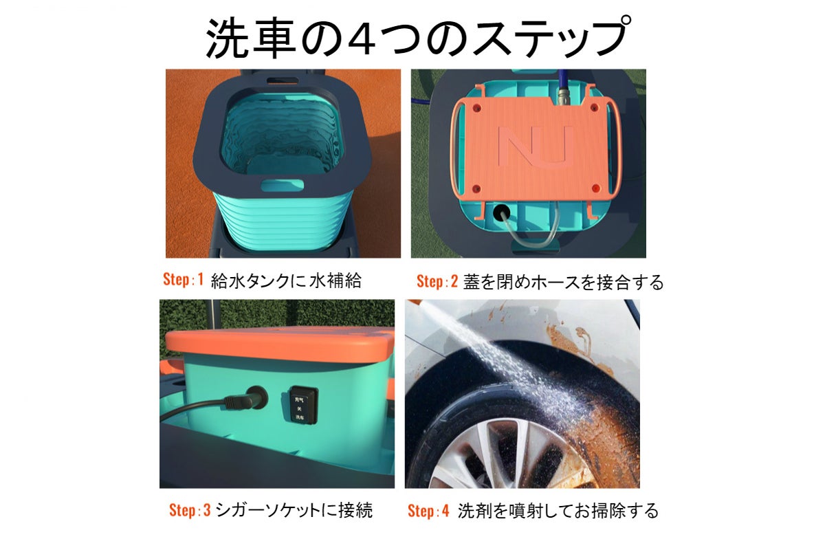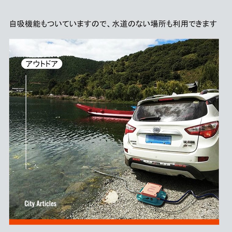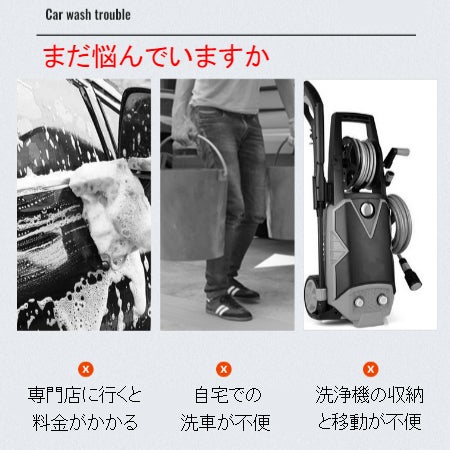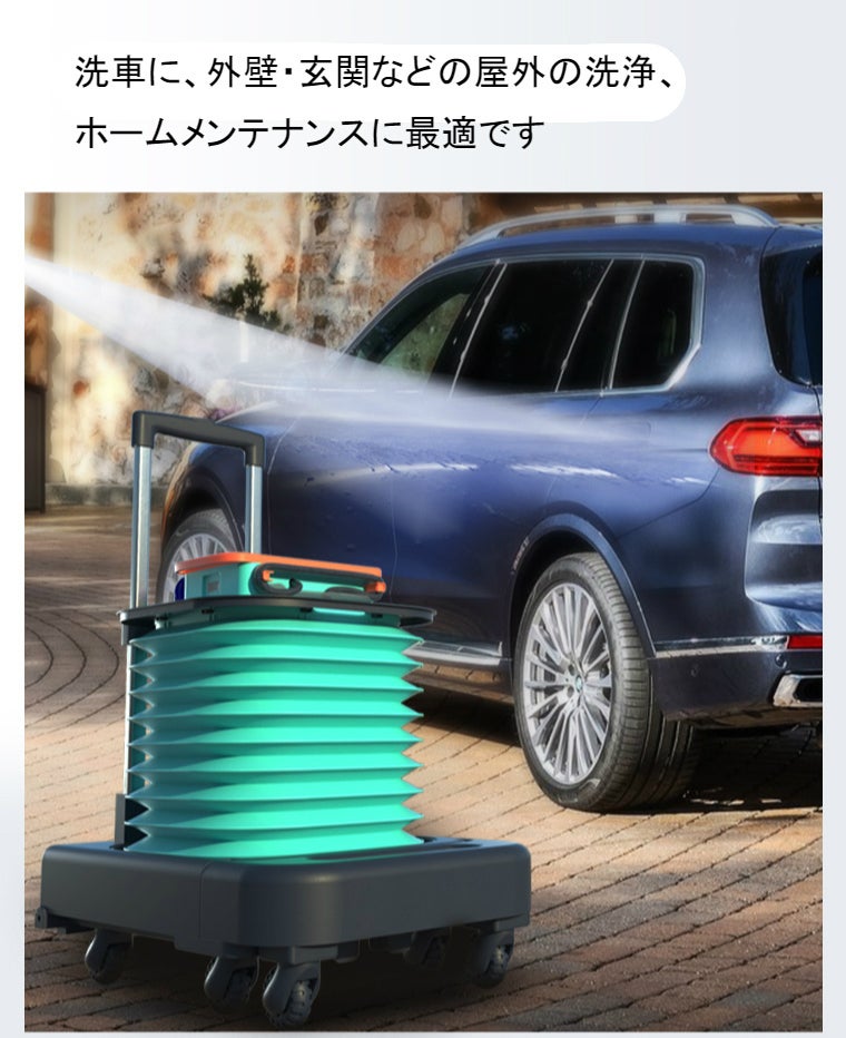 洗車や外壁掃除など、便利な高圧洗浄機です。アウトドアやドライブ途中でも好きなタイミングで洗車できます。