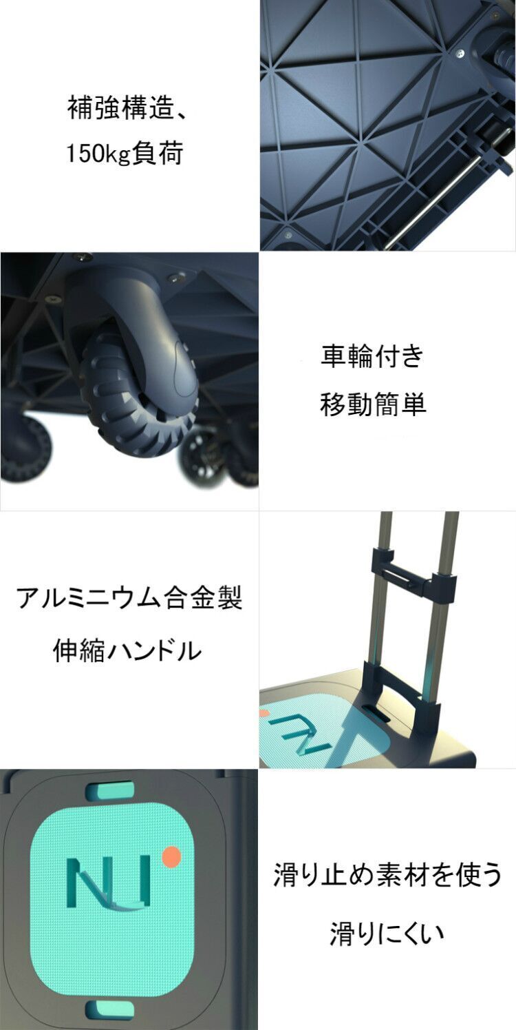 折り畳み式で持ち運びに便利、大容量でショッピングカートとしても利用可能です。耐荷重150kg、お買い物に限らず、重い、数多いお荷物の運搬など使い方もあなた次第です。