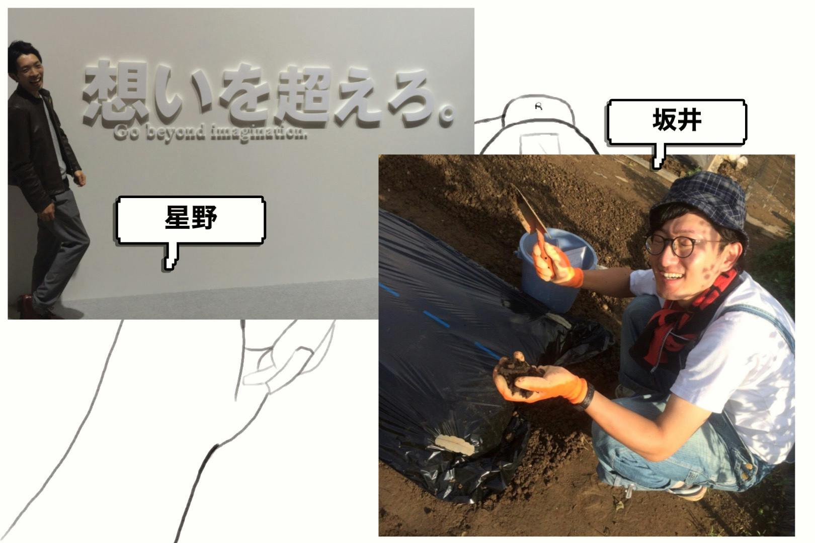 私共2人は高校の同級生で、坂井は技術系の道へ進み機械系の大学を卒業後、自動車・建機車輌・自転車などの部品設計・開発者として現在までエンジニアの道を進んできました。写真は趣味の畑で無農薬野菜を育てている姿です🍅