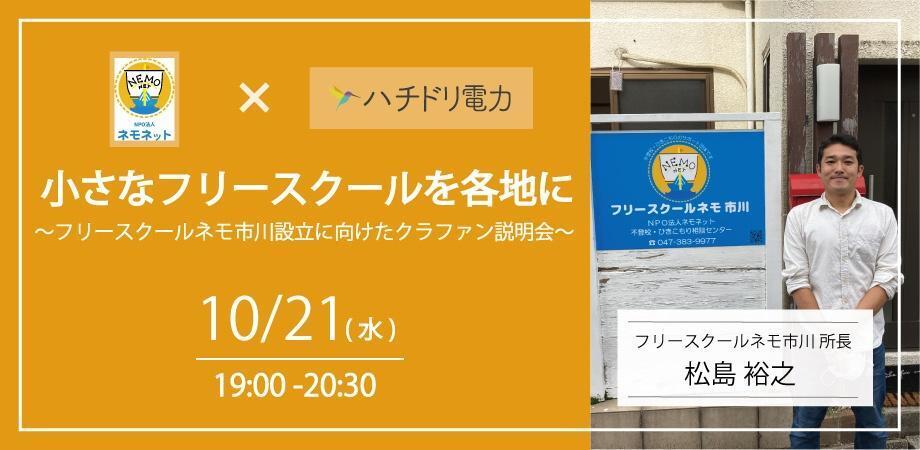フリースクールネモ市川担当の松島が、自然エネルギーで社会に貢献するハチドリ電力さんとのコラボレーションで「フリースクールネモ市川設立に向けたクラウドファンディング説明会」をオンラインで行います。