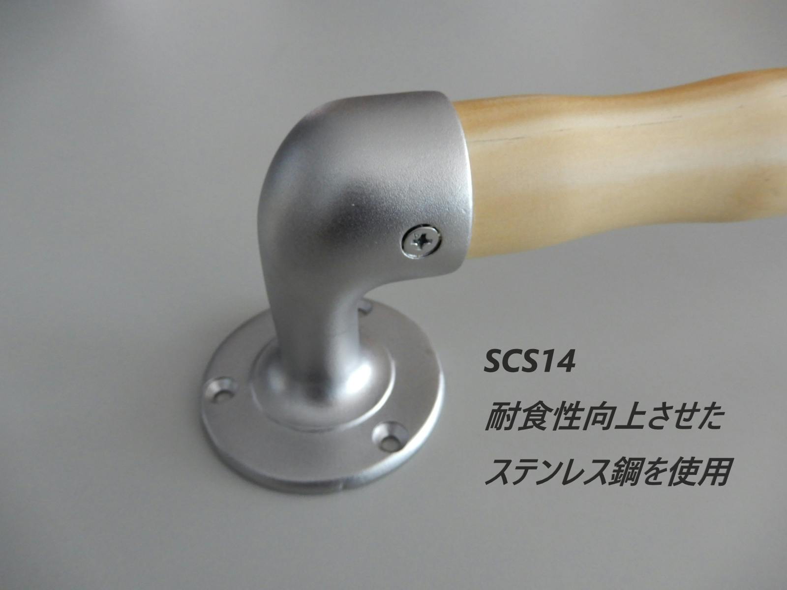 使用しているブラケットはステンレスSCS13を基にニッケル量を増やし、モリブデンを添加することによって更に耐食性を向上させたSCS14(SUS316相当)を使用しています。人に優しい角の無いラウンド形状と傷の目立たないショットブラスト仕上げです。