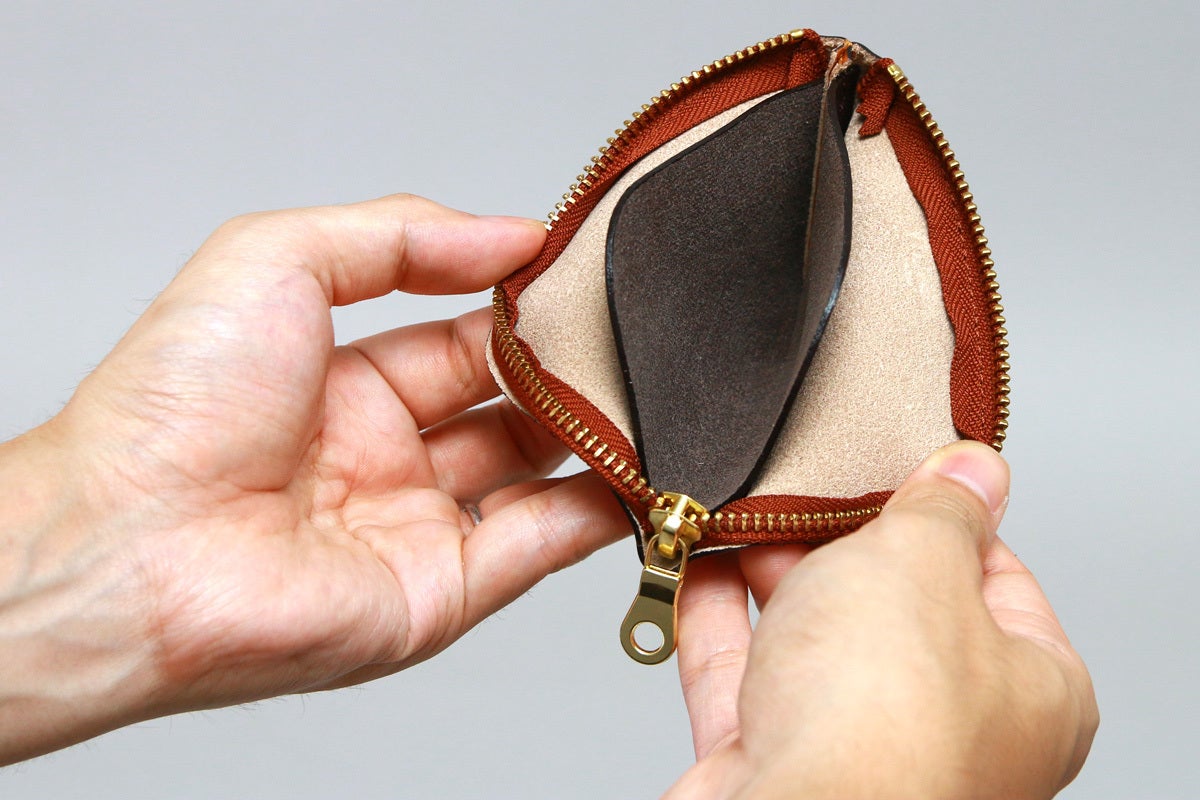 ファスナーを設けない 『袋型』の小銭入れはワンアクションで小銭が取り出せる利点があります。