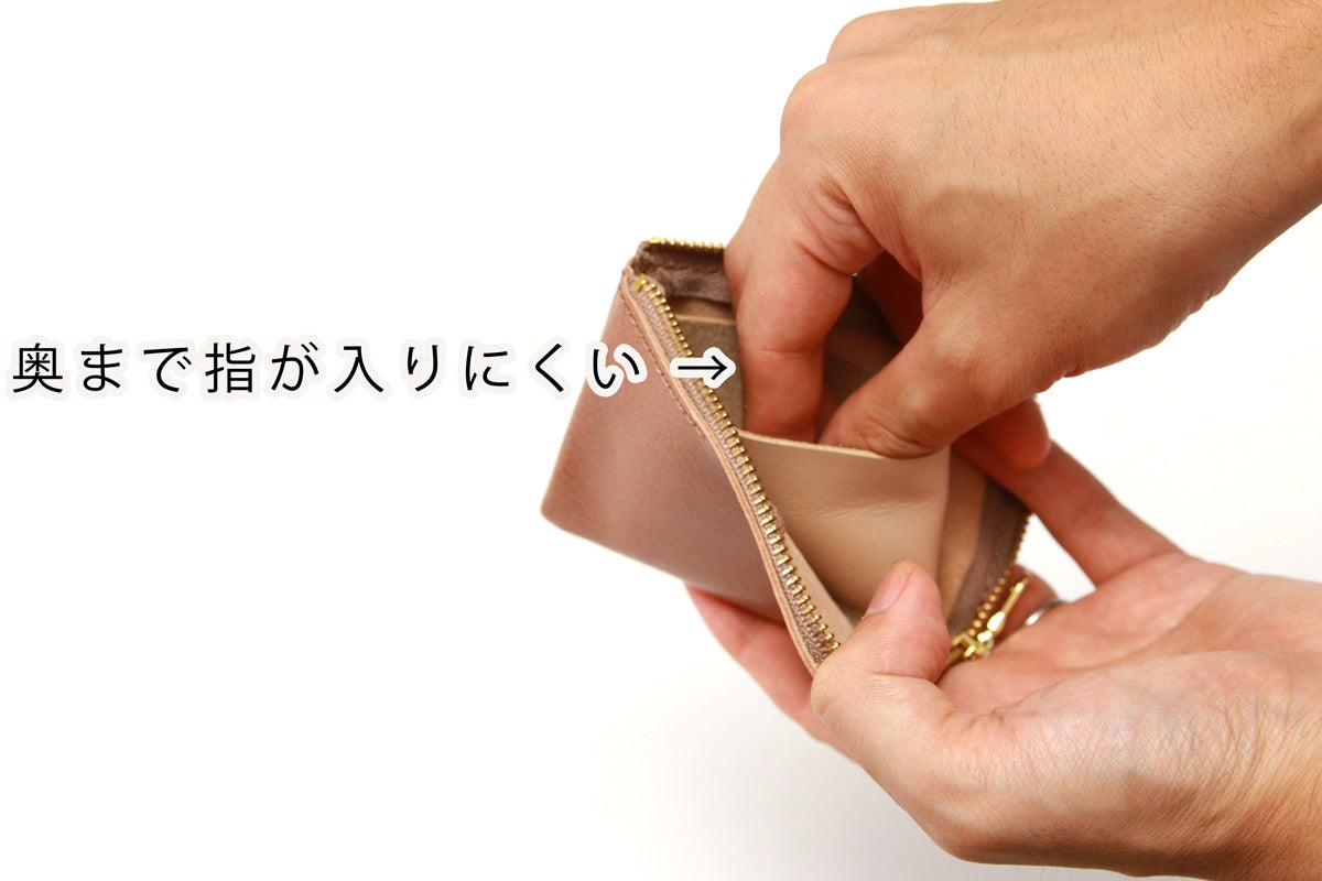 『L字のポケットは、内ファスナーを閉めないと小銭がこぼれてしまう』