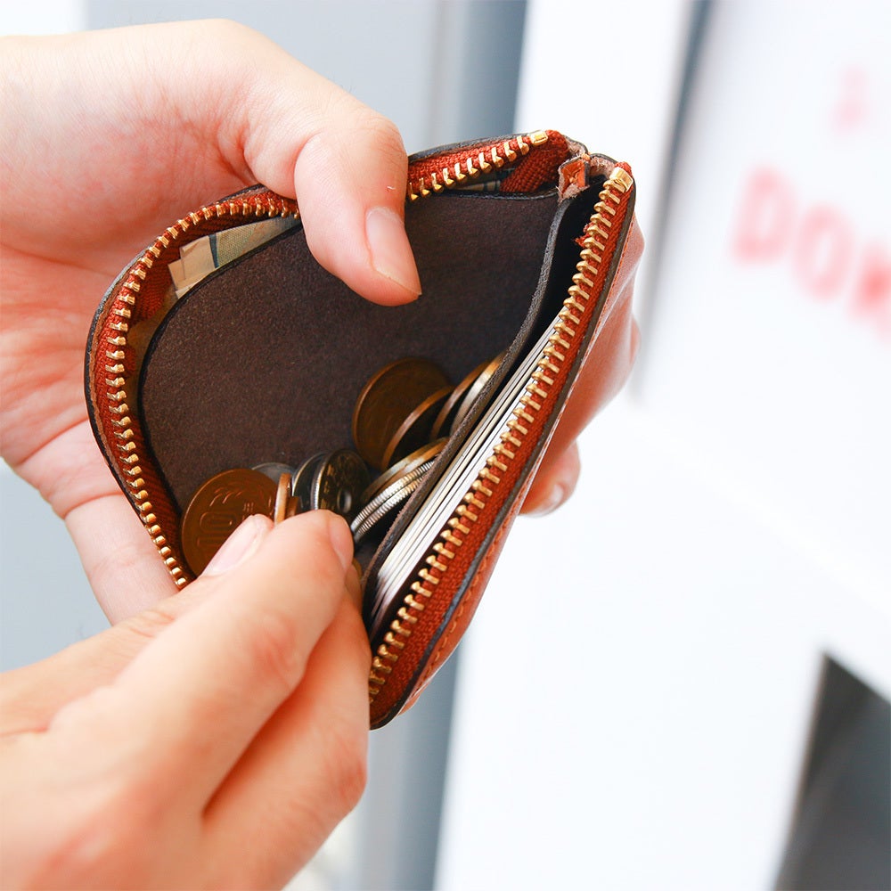 ファスナーを開ける動作減らす事で、小銭を取り出すまでの流れがワンアクションで完了します。
