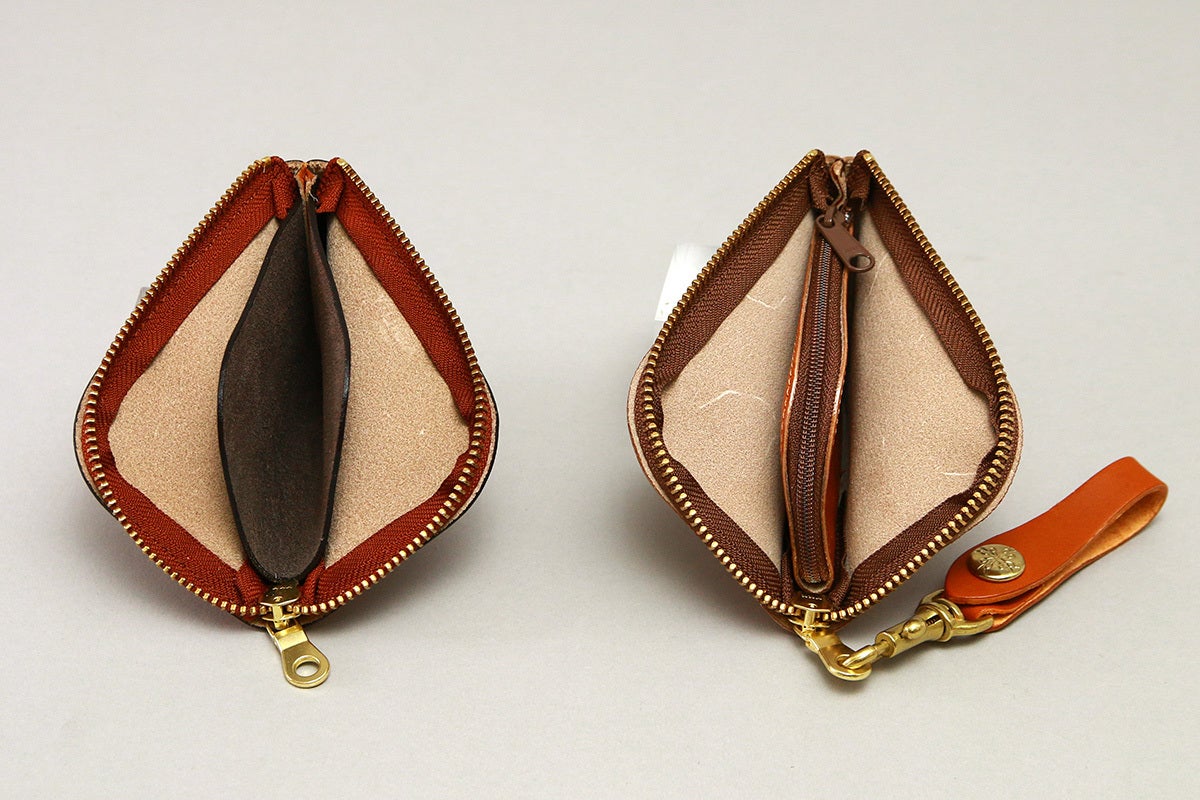 ファスナーを設けない場合、小銭入れの形は一般的に『袋型』になります。
