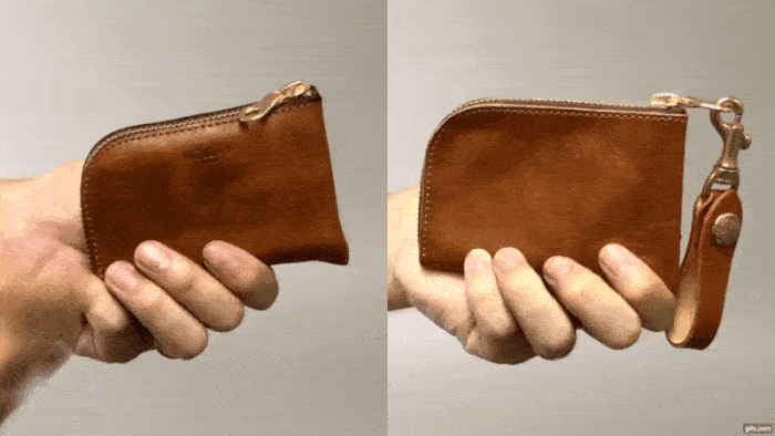 そこで、L字構造をベースにファスナーレス仕様でデザインしたこちらの小銭入れ。