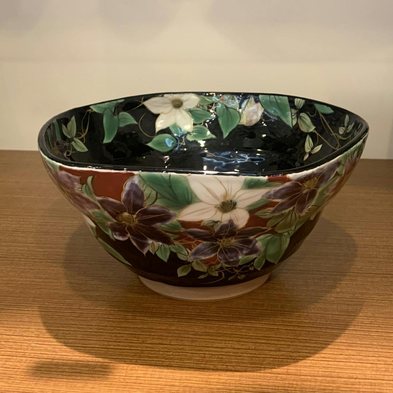 ■4万5000円【気軽に1点物  黒字に鉄線柄の大鉢】