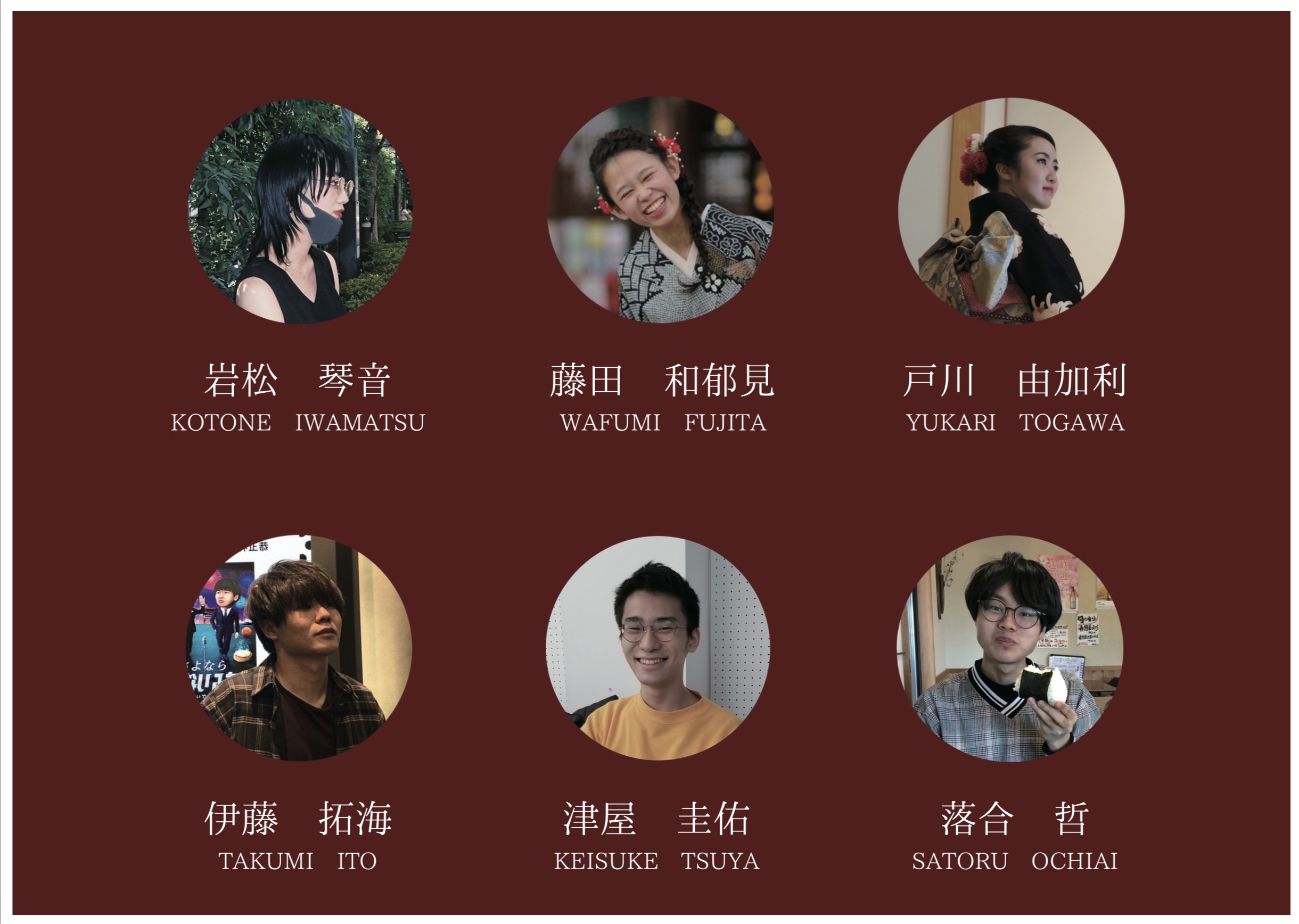 岩松琴音(プロジェクトリーダー、企画、デザイン) ロンドン芸大2年 14歳からイギリスのボーディングスクール(寄宿学校)にて単身留学14歳の頃からデザインを学び現在グラフィックデザインを専攻している。デザインと英語の勉強の他にフォトグラフィー中国語を勉強し課外ではファッションショーの企画運営、イベント等の開催、大学のポスター作成、プロモーションビデオ制作に関わっている。仲間の助けがなければここまでできなかったのでプロジェクトを成功させたい!!!
