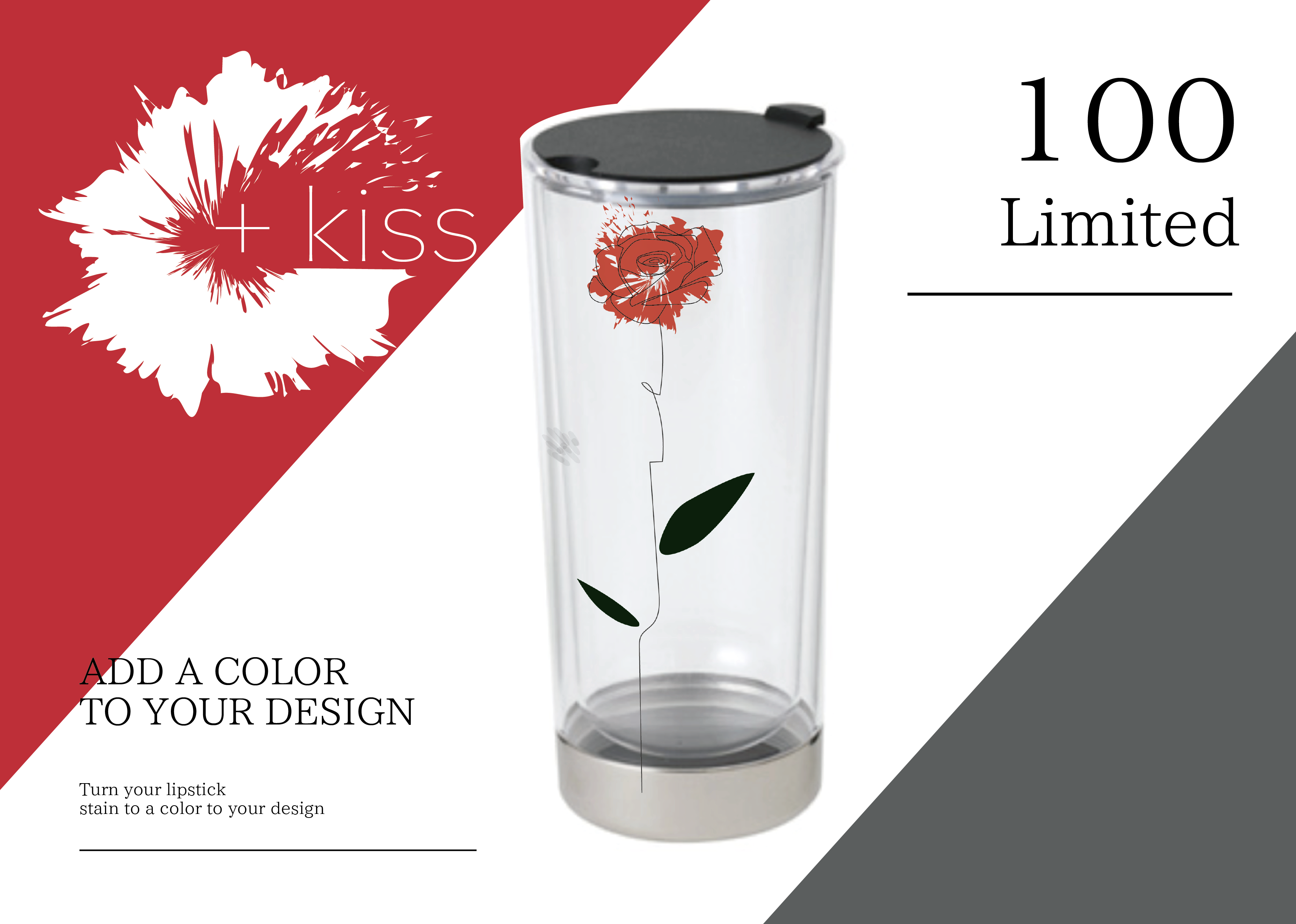 +kissは、口紅跡の色をデザインに変えることでモヤモヤを解決し、あなたの生活を美しくデザインするデザインタンブラーです。