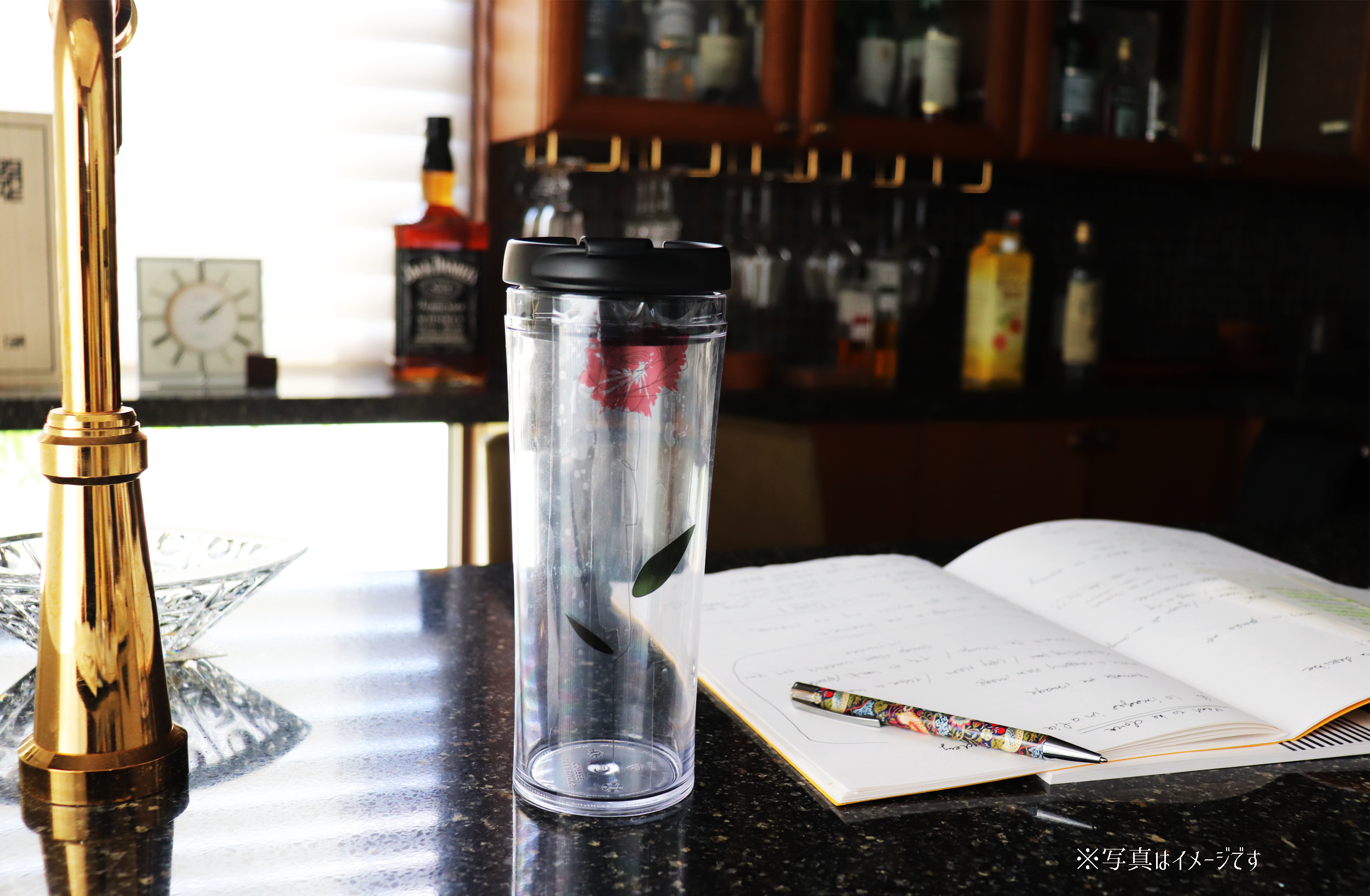 ポイントは、タンブラーの飲み口にデザインされた「薔薇」です。