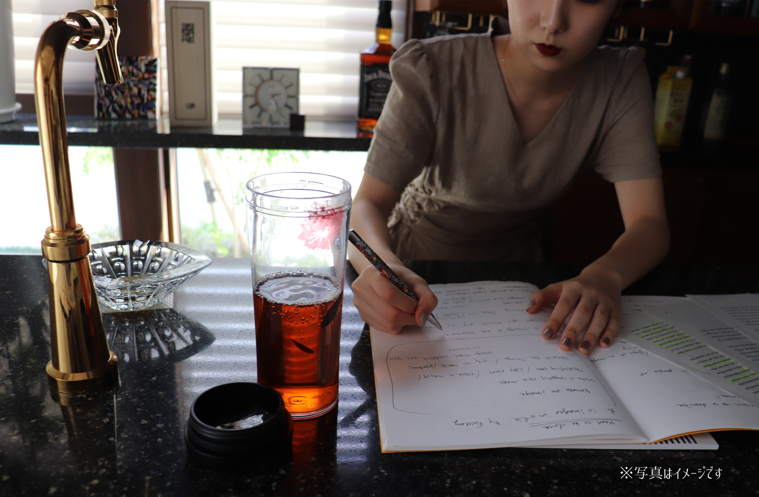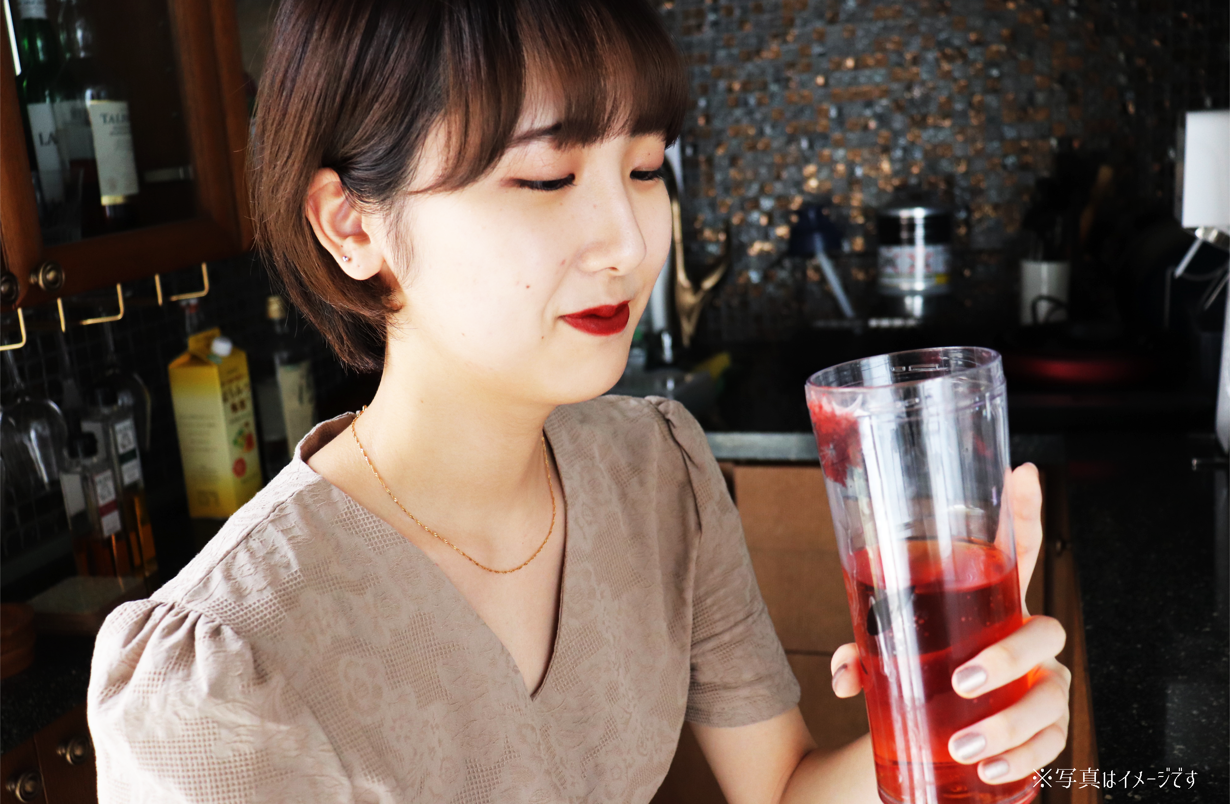 「あ、またタンブラーにべっとり口紅ついてるよ。」