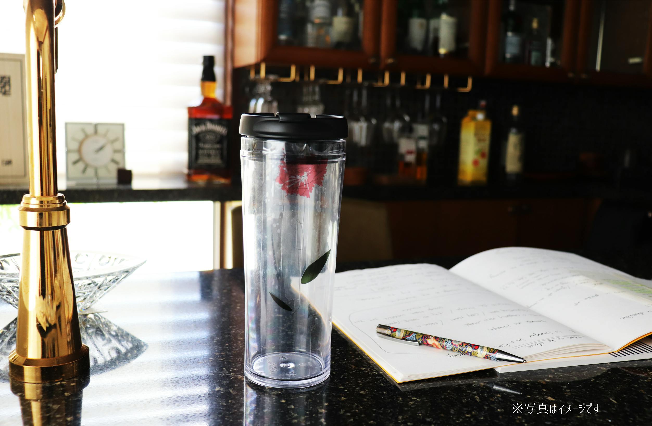 一輪のバラが際立つシンプルでスタイリッシュなデザイン、いろんな場面で活躍できるタンブラー。