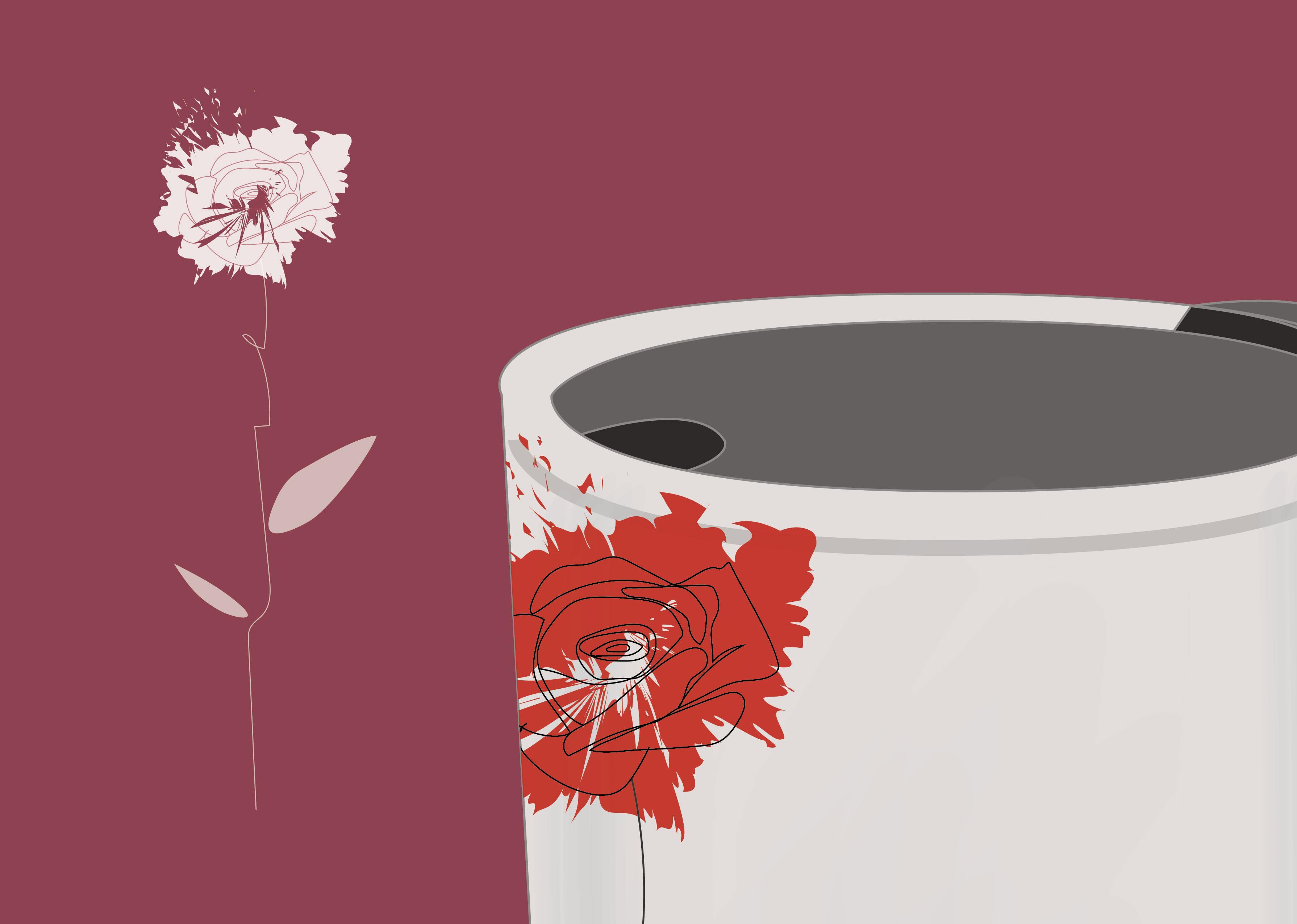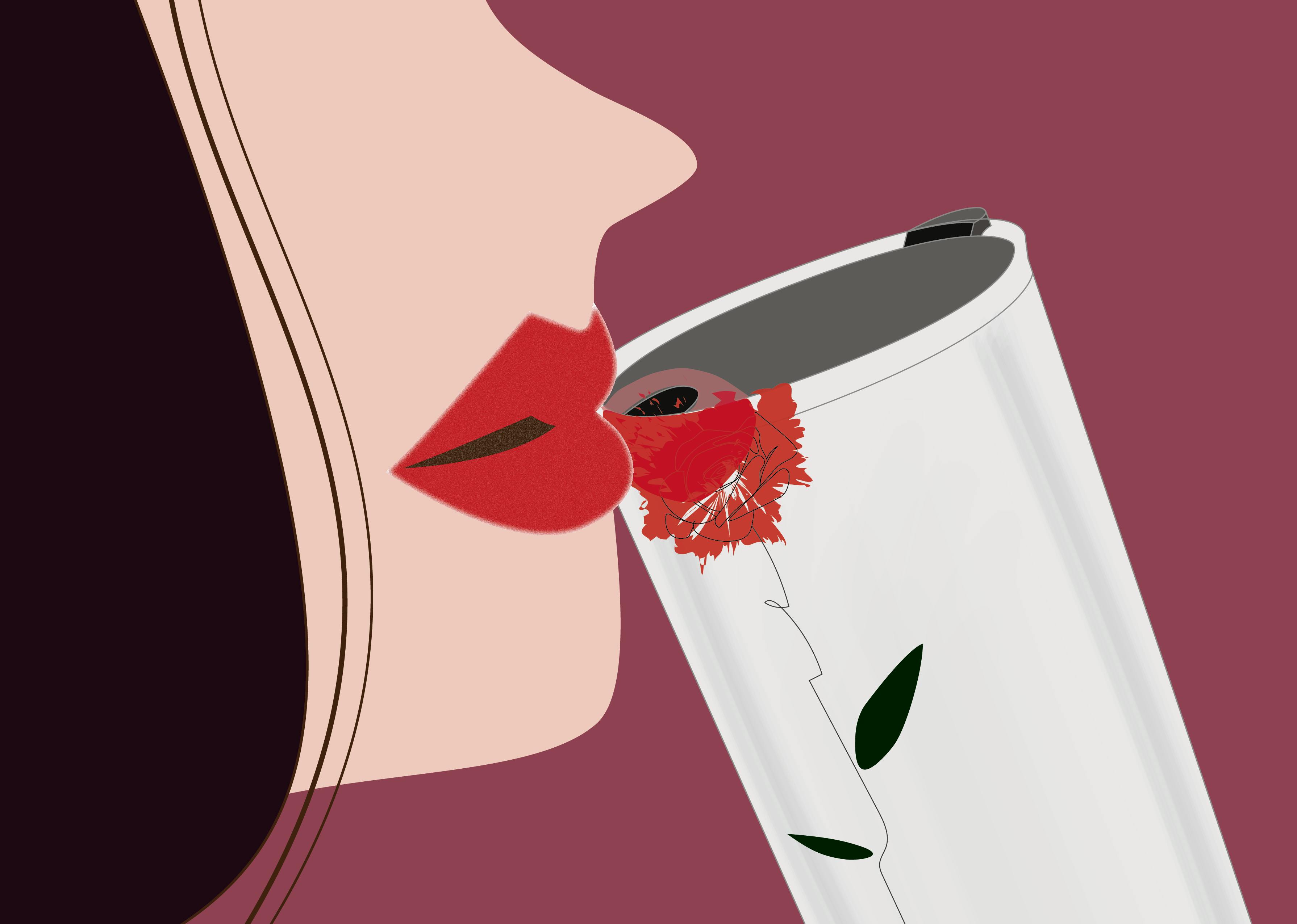 飲み物を口に運ぶたびに「あなたの唇」で薔薇が彩られていきます。