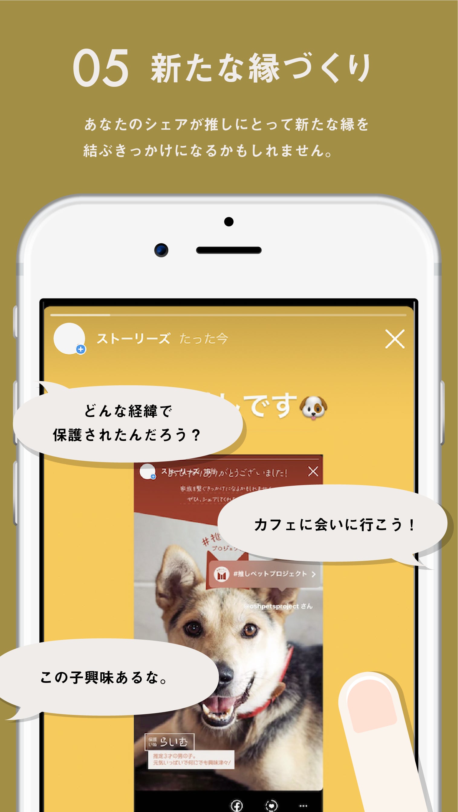 500円の保護犬支援である「おひねり」を通じて縁を感じ次へ広がること、縁を持って支えることで共生する未来を信じ、支縁という言葉を用いました。