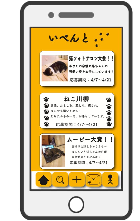 月に数回開催予定のイベントでは、猫のフォトサロン大会やムービー大賞、猫に関する川柳のコンテスト等、様々な企画を用意しております。前述の動画・画像のコンテストに関しましては、猫の手帖社がキャットフードやおもちゃを販売している企業様の協賛を募り、それらの製品を取り入れた動画や写真を募集してさらに猫業界を盛り上げていきたいと思います。
