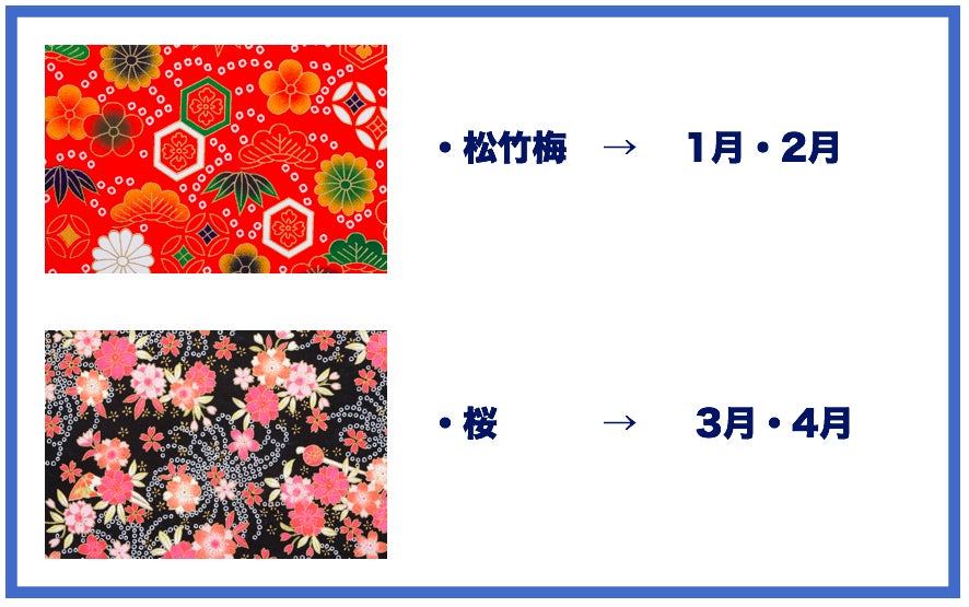 例えば、松竹梅の柄は1月・2月を、桜の柄は3月と4月を表現していることがわかりました。