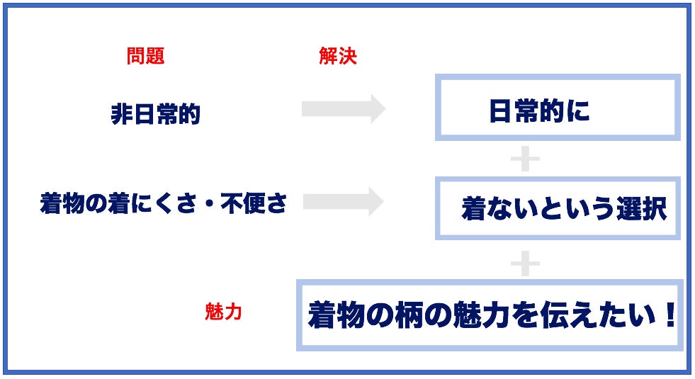 そこで私は、①②のような「人々の着物に対する認識」を変えるような施策を考えることにしました。