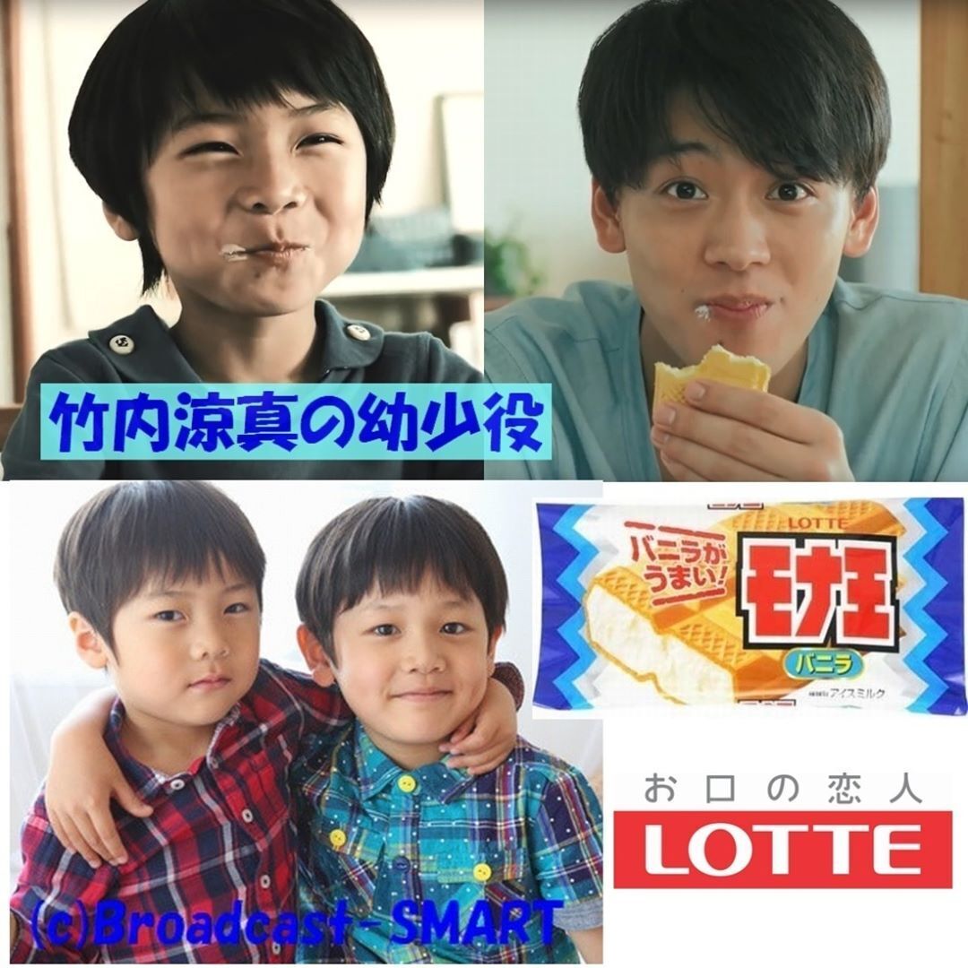竹内涼真と、ロッテのモナ王CMでも共演! 幼少期役です。兄弟でお撮りしてます。