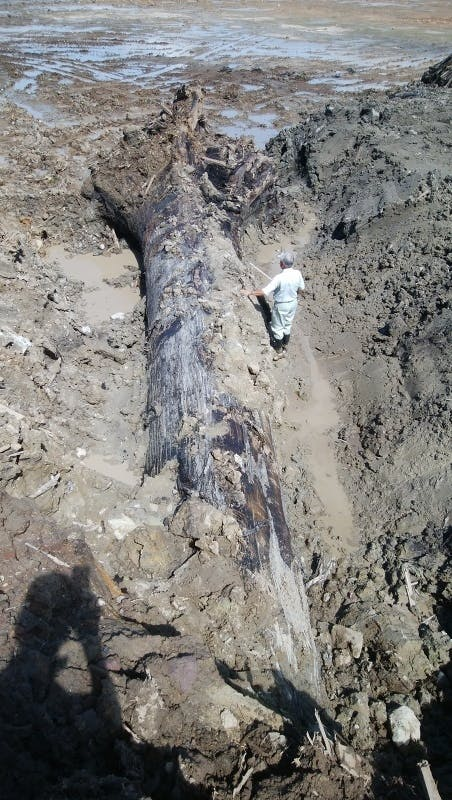 一瞬にして地中に埋もれた『埋もれ木』が、このたびインターチェンジ開発工事中に見つかった。