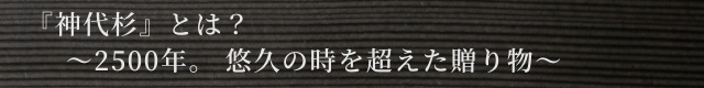 今、まさに2500年間の悠久の時を越え目覚めた『神代杉』の存在こそが、