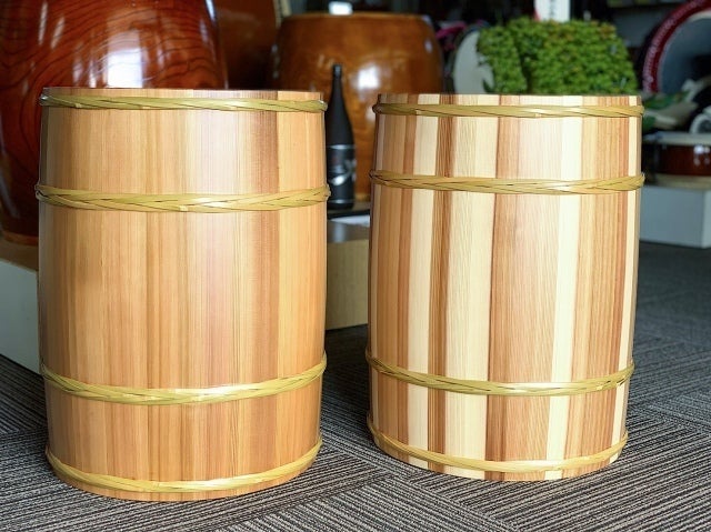 左『秋田杉』 右『吉野杉』 で製作した太鼓用の桶胴。