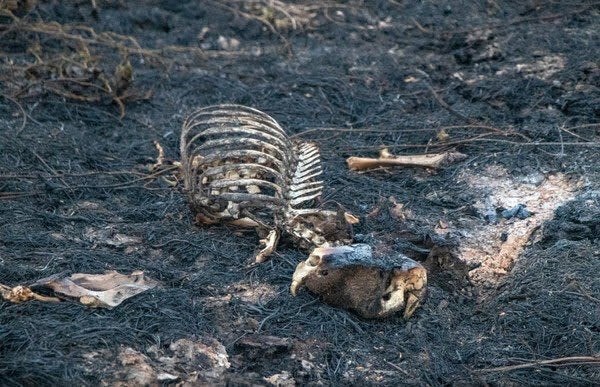 この火災により、生物多様性が豊かな原生林や平原、森林が灰になり、同時に多くの野生動物が焼け出されました...。