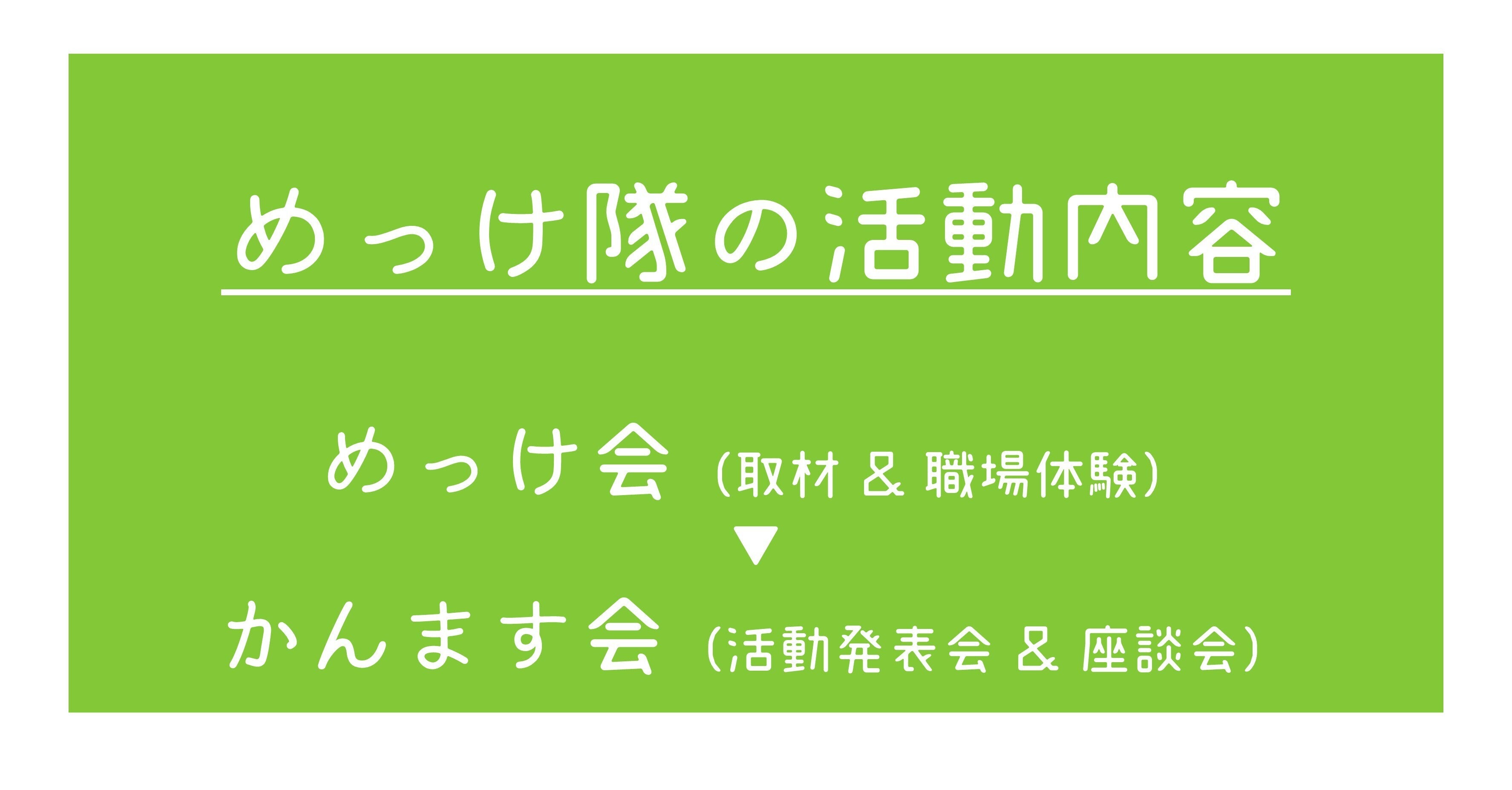 ※「めっけ」とは「見つける」という意味の栃木弁です。栃木の魅力や課題を知り、自分のやりたいことを「見つける」ことが出来る高校生を増やしたいという願いが込めて名付けました。