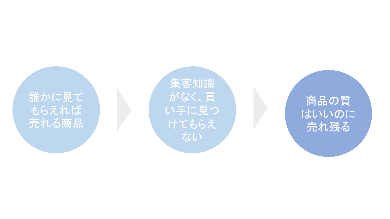 ②お客さんの求めているデザイン、質を持ち合わせていて、認知さえされれば多くの人が購入するはずだったのにもかかわらず、集客、広告の知識がなく売上に繋げられていないケース