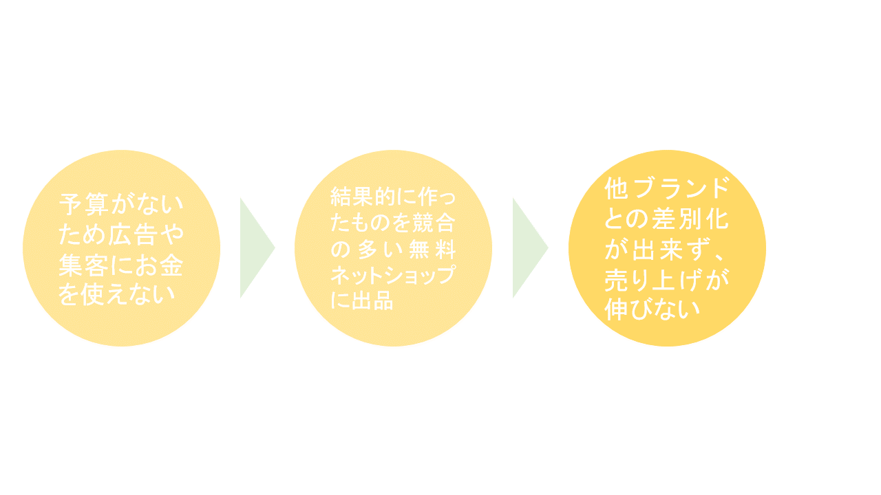 ③アパレル商品や化粧品を作る上で初期コストの発生は避けて通れるものでは無く、その費用を上手く運用できず、資金的に苦しくなり不完全燃焼で撤退してしまうケース