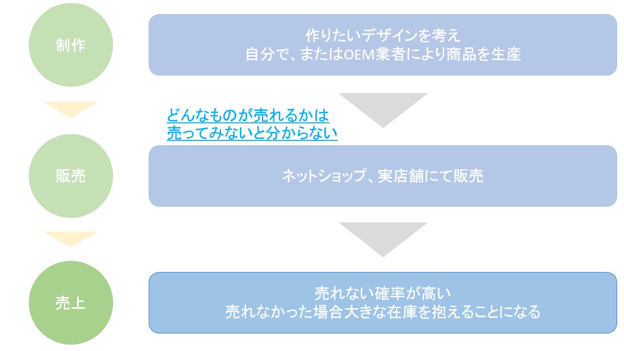 しかし実際は商品が売れ残ってしまう理由を細かく分析、改善すれば、誰でも極限までリスクを抑えてブランドを立ち上げることが可能です。
