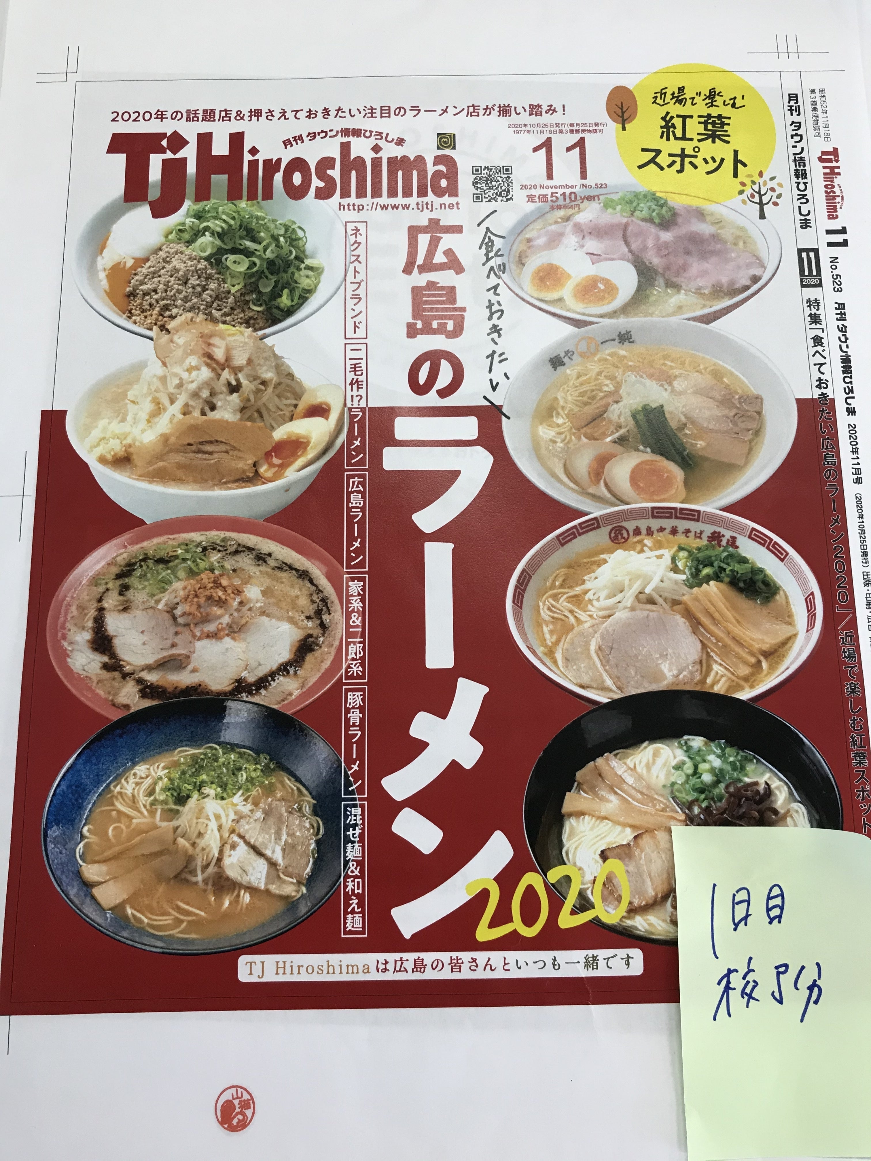 現在TJ Hiroshima編集部では流川エリアの取材が佳境に近づいている状況ですが、そんな中11月号の制作も着々と進めており、いよいよ今週末、10月25日に発売となります(^_-)-☆!今回は広島の皆さんは特に大好きラーメン特集!今まで何回かラーメン特集は実施していましたが、それでもまだまだご紹介しきれていない2020年話題の店をたっぷりと紹介します!