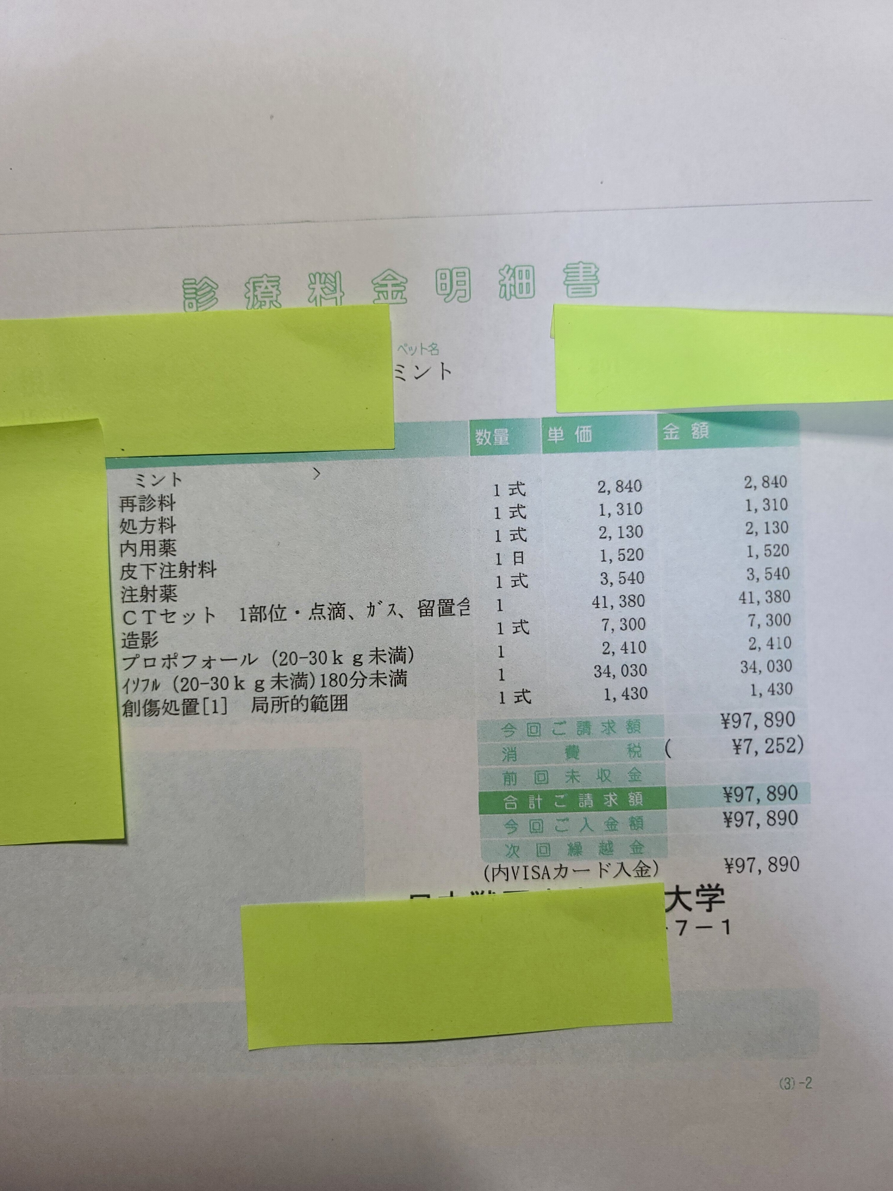 この時点で、獣医さんには、手術が必要と言われ、某大学病院で手術を受けることとなりました。