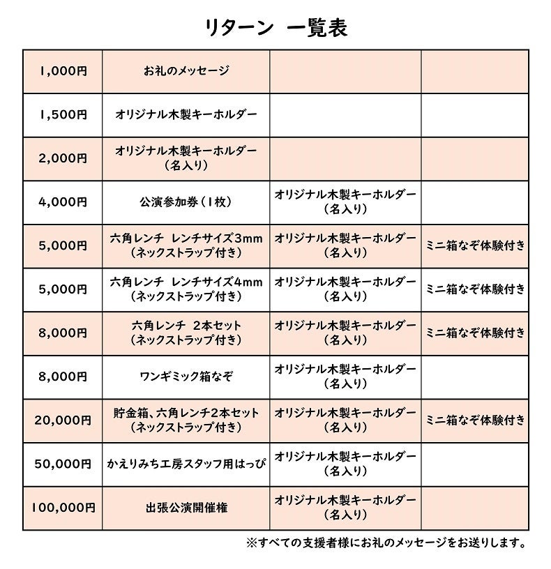 ミニ箱なぞを体験できるのは、ミニ箱なぞ体験付きに支援してくださった方のみとなります。