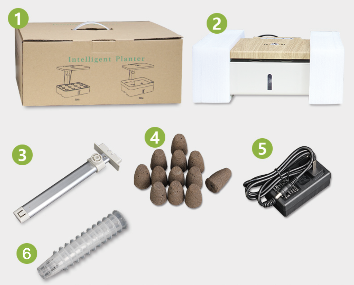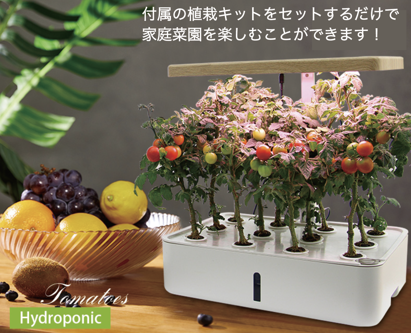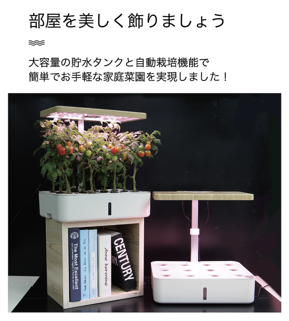 ① 自宅で簡単、スイッチ押すだけインテリ水耕栽培!