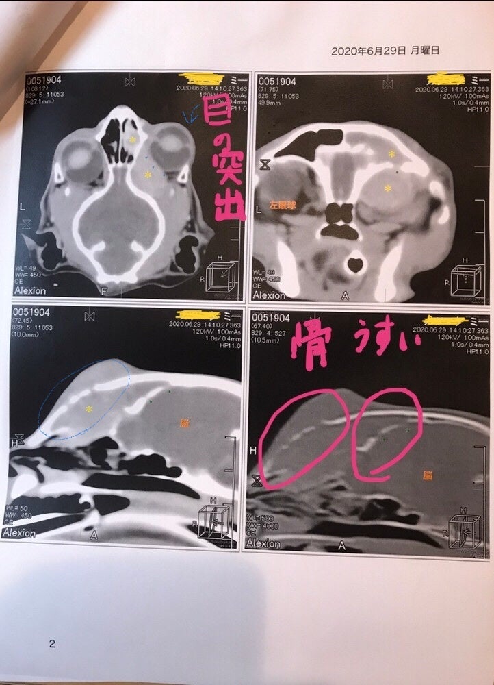 また、みーの目の飛び出している姿は可愛そうで辛くて撮っていませんでした、申し訳ありません。下図の時も突出してるのですが麻酔後で目が開かずわかりにくいです。