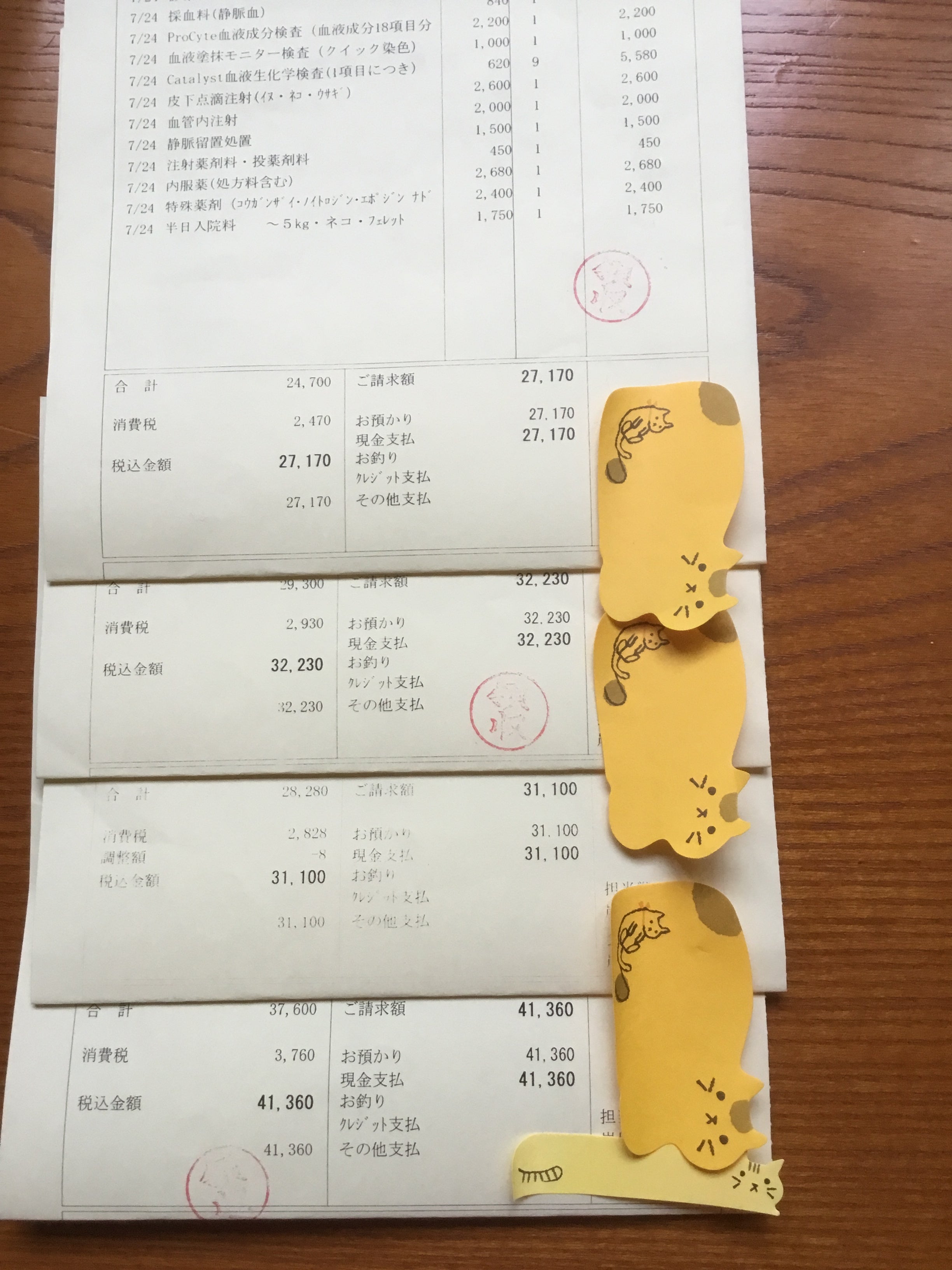 抗がん剤治療に入るまでの検査及び治療費の明細書