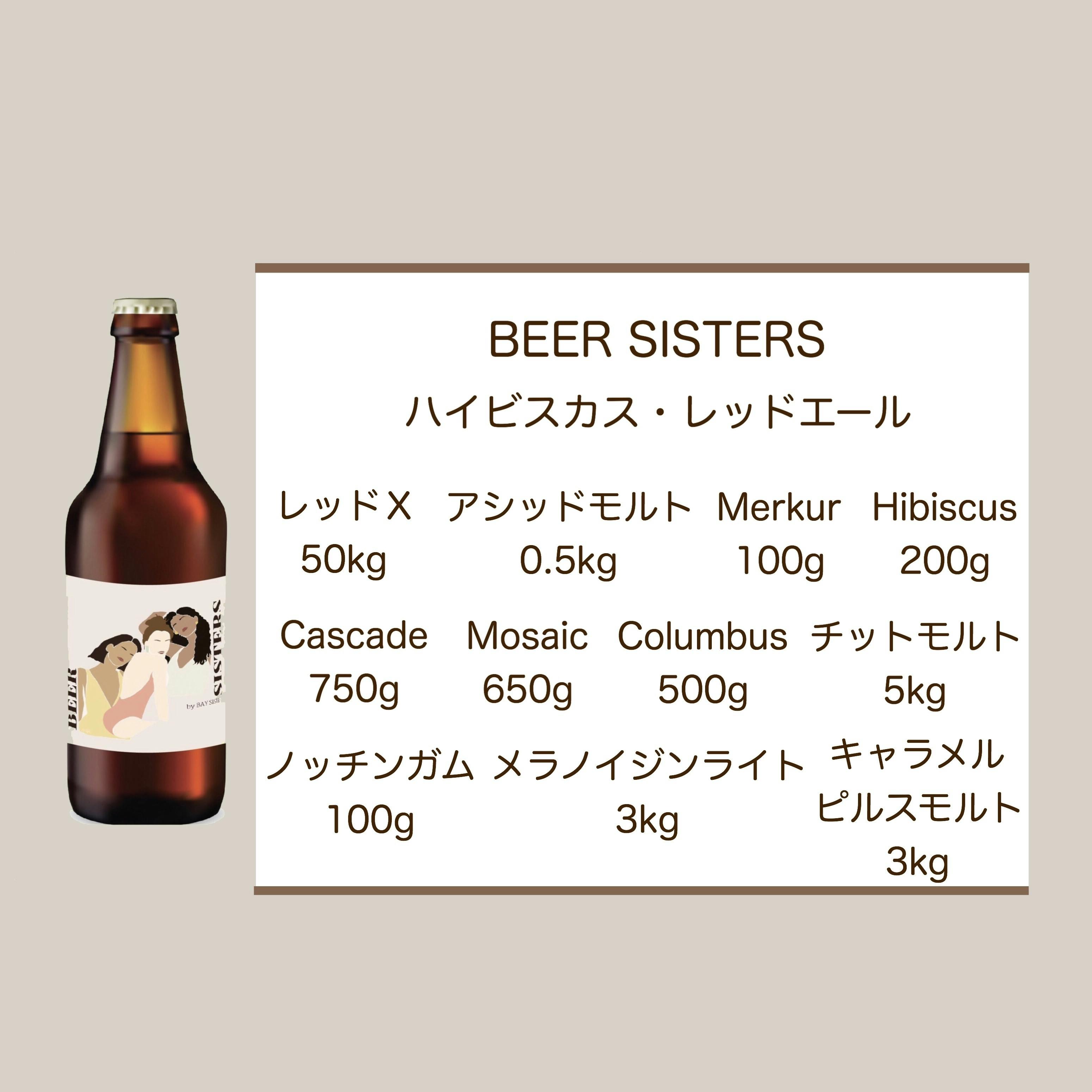 BEER SISTERSのラベルはNAGISAさんに描いてもらいました。様々な女性が繋がることで強くなるイメージを絵に起こしてもらいました。それぞれのフィールドで活躍する女性が互いに刺激を与え、支え合っている図です。またビールの味はハイビスカスが入ったエールビールで苦味も少し抑えた女性も飲みやすいものとなってますので、見た目でも飲んでも楽しめるビールをご用意しました。330ml中瓶サイズになります。